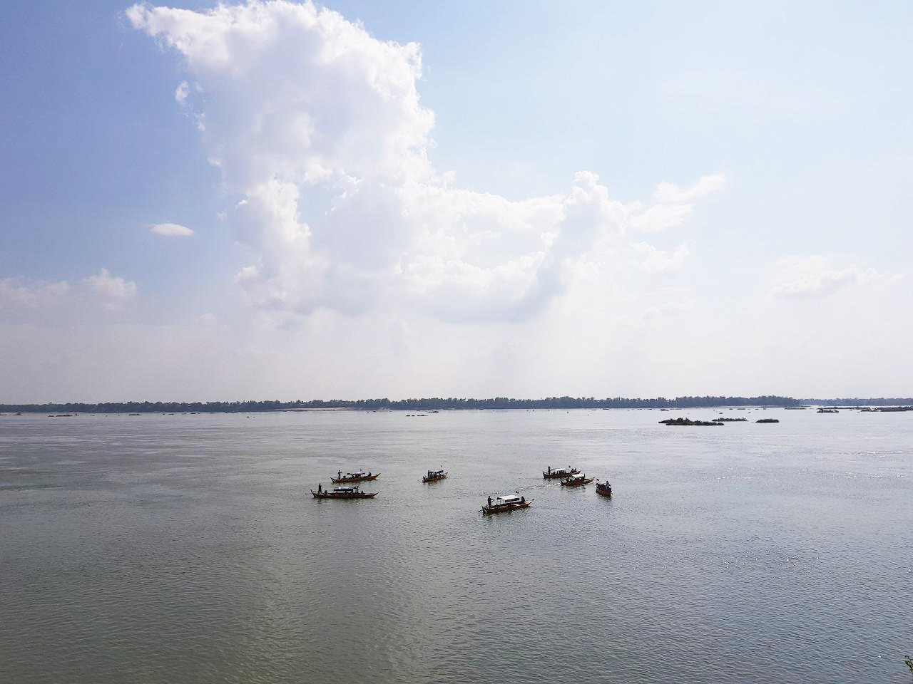 강에 도착하니 이미 많은 배들이 떠 있다. 기대를 안고 배를 탔다. 선장과 나, 둘이다. 배가 시동을 걸고 천천히 강 한가운데로 나가는데 노를 잡고 있던 선장 아저씨가 갑자기 ‘오버데어 오버데어’한다. 무슨 말인가 했더니 영어였다. 외국인이 많이 오다 보니 안내에 필요한 간단한 영어를 하는 것이었다. 하지만 ‘오버데어‘라는 그곳에는 아무것도 보이지 않았다. 돌고래가 수면으로 떠오르는 것은 순간이었다. 선장이 ‘오버데어’하고 외쳐서 보면 돌고래는 이미 물속으로 들어가고 미끈한 등만 조금 보였다. 나는 결국 프싸옷 얼굴 보는 것을 포기해야 했다.