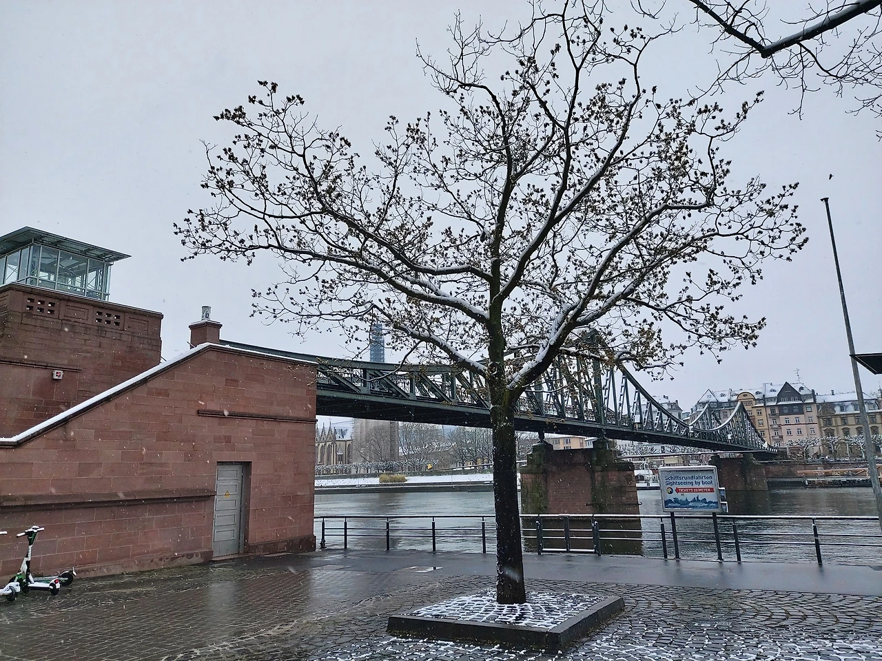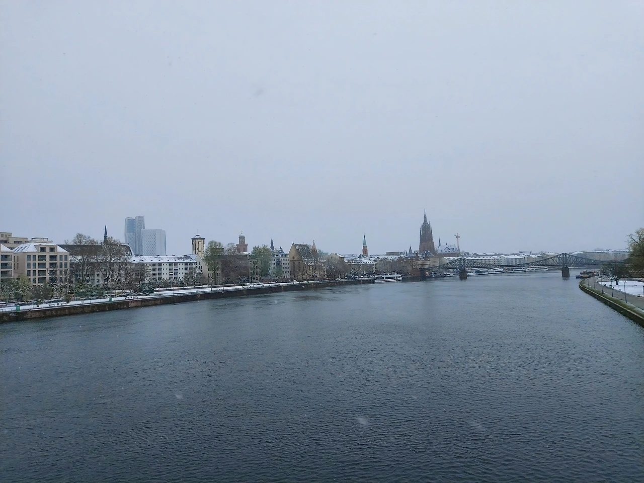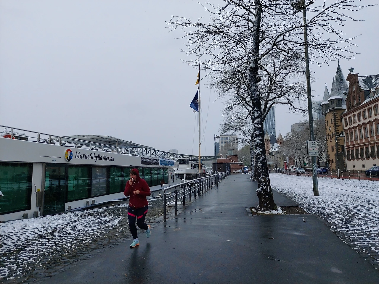 프랑크푸르트는 마인강을 끼고 있다. 하얀 눈으로 덮인 마인강변을 뛰는 사람과 마주치며 가볍게 몰겐(독일어 아침 인사)하고 인사하니 그녀도 가볍게 손을 흔들어줬다.