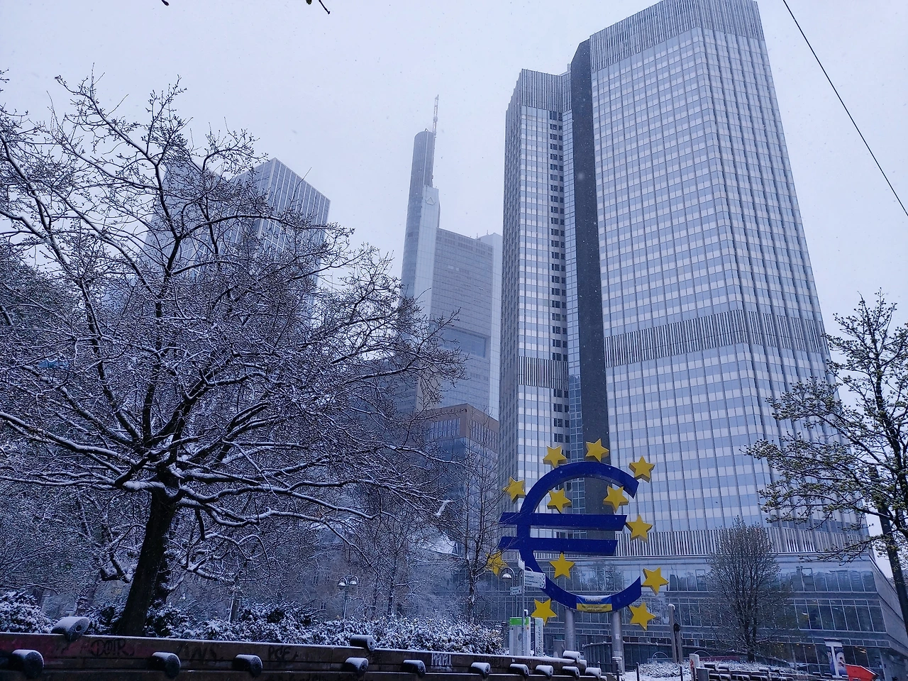 프랑크푸르트는 헤센(Hessen)주의 최대 도시다. 유럽중앙은행과 증권거래소가 있는 유럽금융의 도시다. 중앙역 정면으로 길을 조금 달렸더니 유로화 표시가 보이는 빌딩이 보였다.