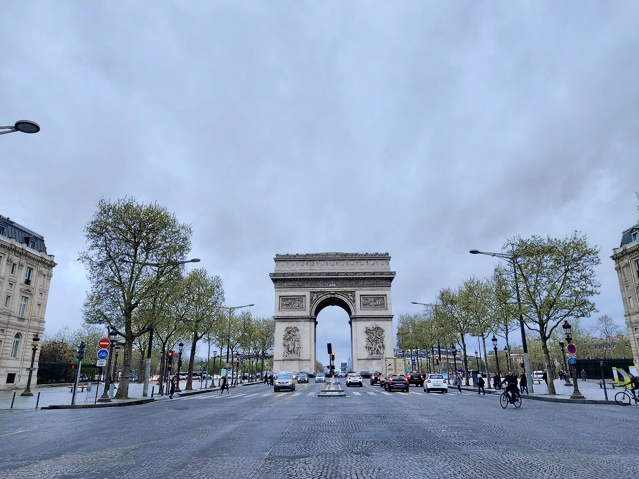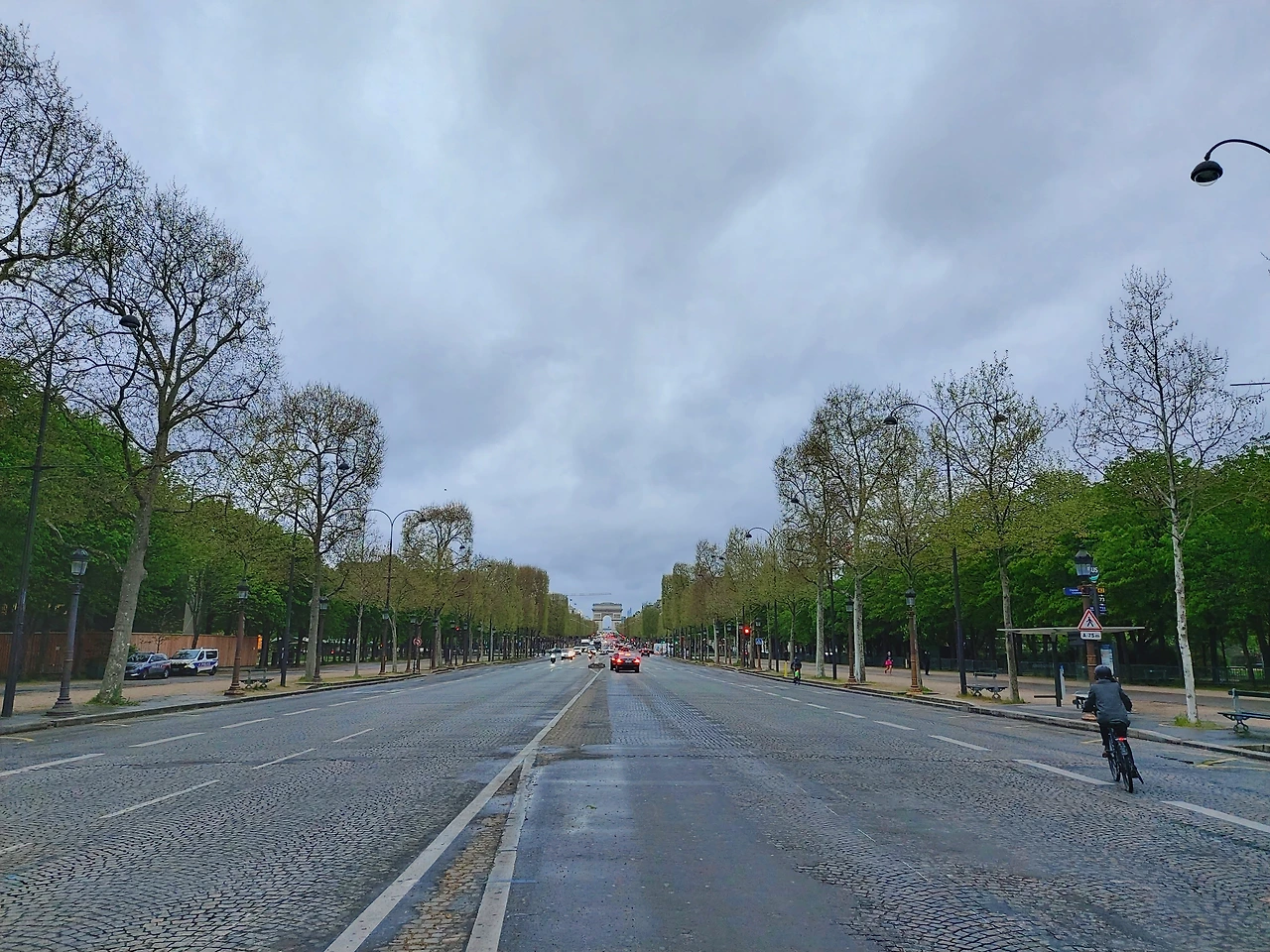 쭉 뻗은 도로, 달리고 싶은 착각을 불러일으키는 일직선의 낭만, 야외 카페테리아에서나는 모닝 커피향... 저 멀리 개선문이 보였다.
