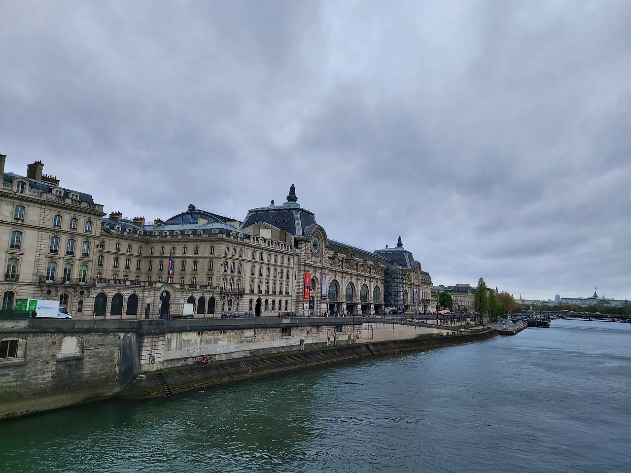 강변은 최적의 달리기 코스다. 한강변도 어디 내놔도 뒤지지 않는 좋은 코스다. 한강변과 세느강변의 경치가 오버랩되니 묘한 감정이 느껴졌다. 여기가 한강인가? 세느강인가? 달릴 때의 즐거움, 상상, 삶의 자신감은 장소가 어디든 같다. 세느강변에서 나는 즐거운 상상을 하며 달렸다. 시니어의 꿈을 그리며 달렸다. 내가 달리는 이유는 60대 젊은 청년이 되고 싶어서다. 그렇게 나는 세느강변을 계속 달렸다. 3km 정도를 달려 좌측에 루브르 박물관이 보이고 우측이 오르세 미술관. 세느강 다리에서 오르세 미술관의 전경을 찍는데 사진이 아닌 그림이 되었다. 오르세 미술관 외관 또한 거대한 작품이었다.