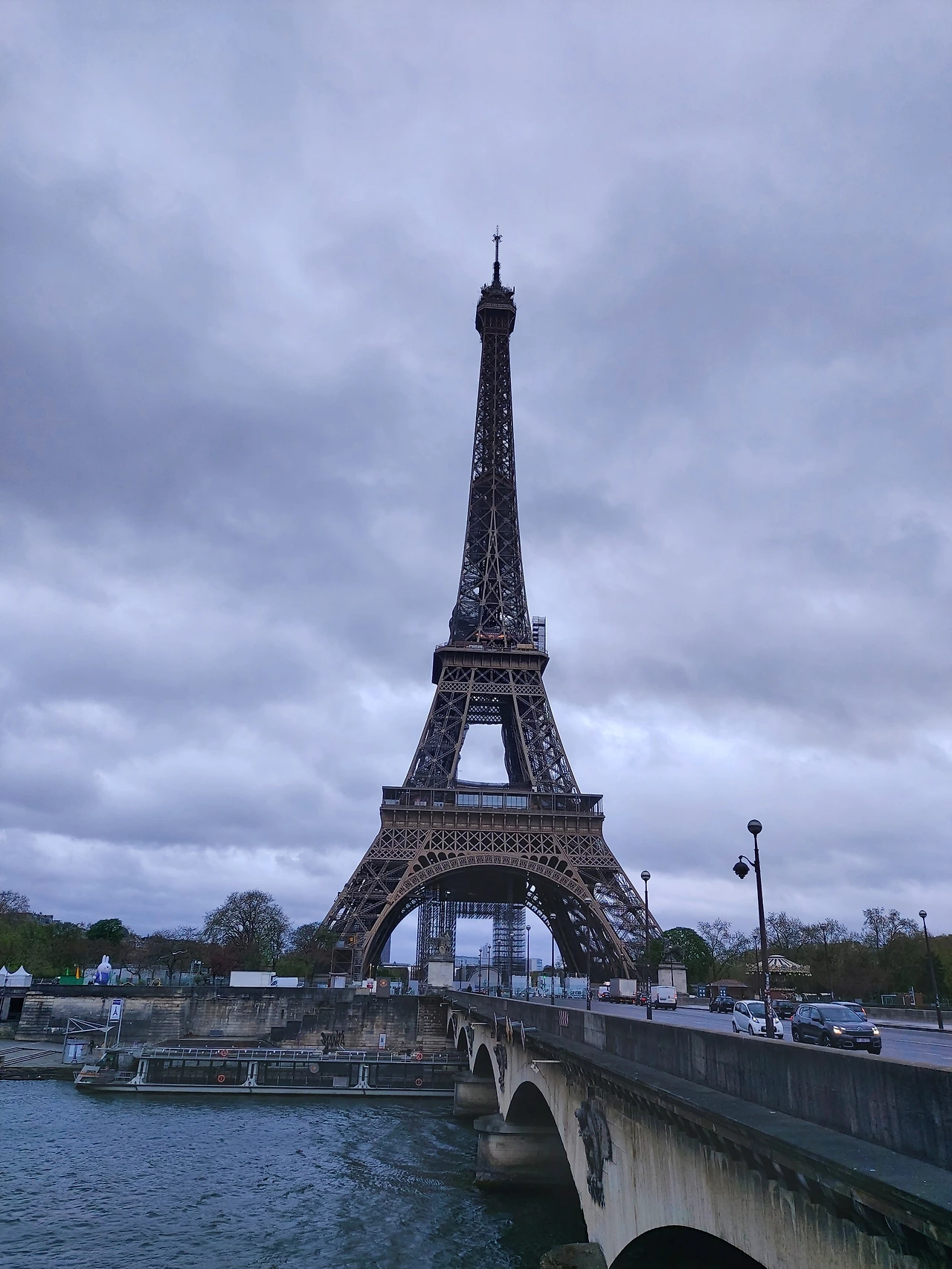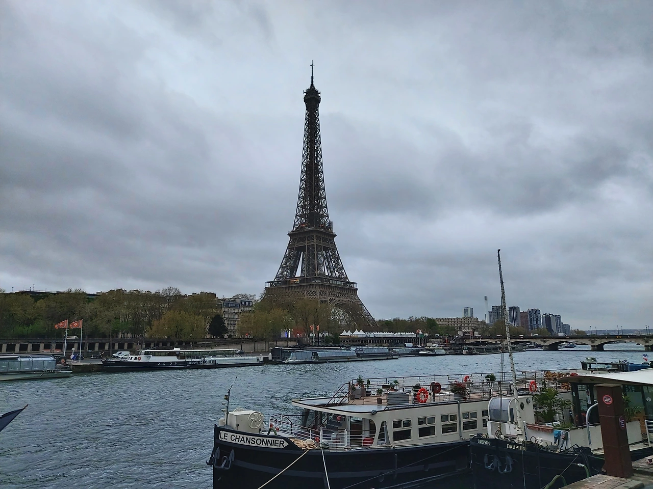 여기까지 4.5km다. 개선장군이 되어 혼자 느끼는 감동은 엊그제왔을 때의 느낌과 또 다른 감흥이었다. 뭐랄까... 내 주변에 흩어져 있는 행복의 감정 조각들을 모두 모아 내 꺼로 만든 느낌? 그리고 에펠탑을 향해 달렸다. 개선문에서 에펠탑까지는 2km 정도. 파리 시내 어디서든 에펠탑을 볼 수 있다. 높은 건물이 많지 않은 파리에서는 300m의 철골탑은 엄청난 높이다. 빠른 걸음으로 달렸다. 에펠탑을 보고 거기서부터 돌아 달리는 코스로 세느강변을 달려총 11.5km를 1시간 10분 정도로 주변 경관을 즐기며 편하게 달리자고 했지만 여기까지 달려오면서 너무 여유를 부려 10분 정도 초과가 예상되어 아내와의 약속을 지키기에 빠듯해빠르게 달렸다(대개 이런 때 나의 두발은 05:20/1km 속도다). 구글맵을 보며 정확히 달려 도로를 빠져나오자 거대한 철골 구조물이 눈앞에 나타났다. 다시 보지만 눈을 휘둥그레 만드는 광경이다. 에펠탑은 높이로 인해 가까이 보기보다는 좀 떨어져 보는 게 더 멋있다. 호텔로 돌아가며뛸 세느강변의 어느 다리에서 에펠탑을 보며 핸드폰 카메라 셔터를 수없이 눌렀다. 그만큼 에펠탑은 최고의 그림이었다. 강변의 유람선과 하늘 그리고 철골탑과의 조화, 나는 멍하니 다리에 서 있었다. 특별히 생각한 것은 없었다. 그저 눈앞에 펼쳐진 공간이 너무나 조화롭게 느껴졌을 뿐이었다. 그리고 내 두발을 쳐다봤다.