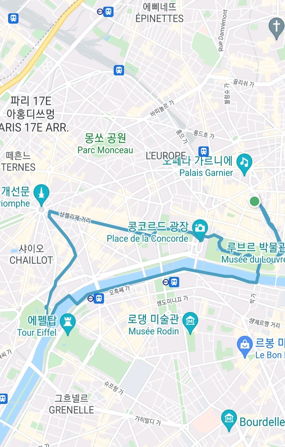 파리 시내(중심가)는 그다지 크지 않은 편이다. 우리가 알고 있는 명소들이 뛰어서 갈 정도의 거리에 있다(달리기를 즐기는 사람 기준의 거리 개념이며 걸어서 다닐 거리는 아니다). 나는 파리 시내 주요 명소를 두발로 뛰어보기로 하고 이른 아침 옷을 챙겨 입고 호텔을 나왔다. 아내에게 한 시간 반 정도 시간 양해를 구했다. 이번 여정에서 도시 도시에 도착하면 한번은 꼭 시내를 달리기로 내심 결정했던 터라 캐리어 안에 운동복은 필수였다.