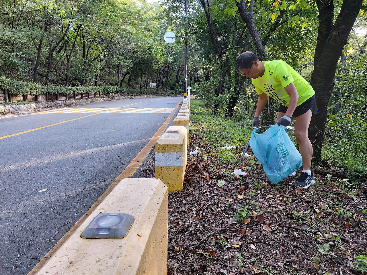 산성역에서 남한산성 오르는 길은 사람이 다니지 않는 차량 전용 도로다. 나는 한 달에 서너 번 이른 아침 차량이 거의 없을 때 도로 갓길을 달리곤 한다. 그때마다 갓길에 쓰레기가 많아 눈살을 찌푸리게 했다. 이 길은 사람이 다니지 않는 길이기에 쓰레기 치우는 게 쉽지 않다. 나에게는 이 길이 플로깅에 제일 적합한 길이다.