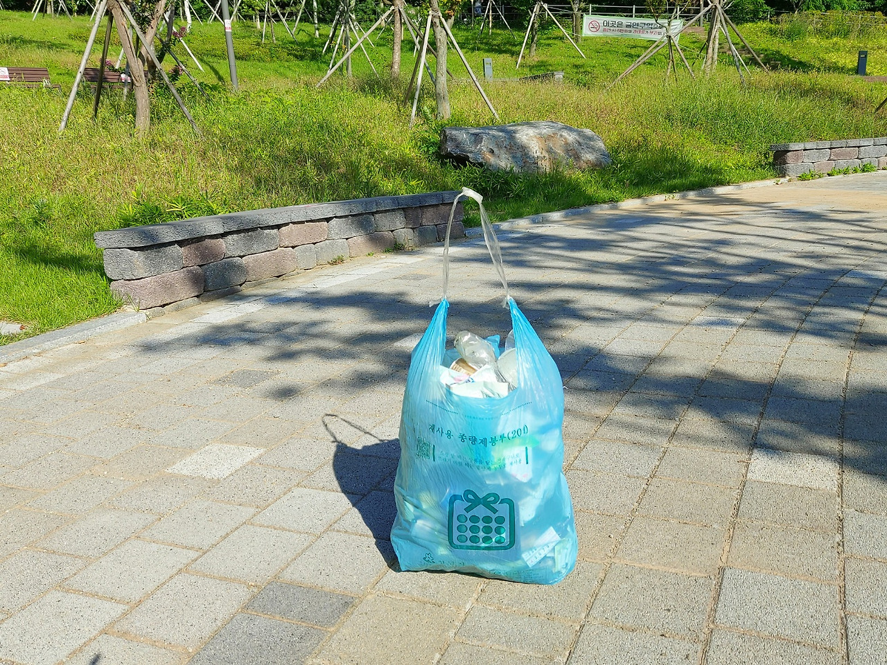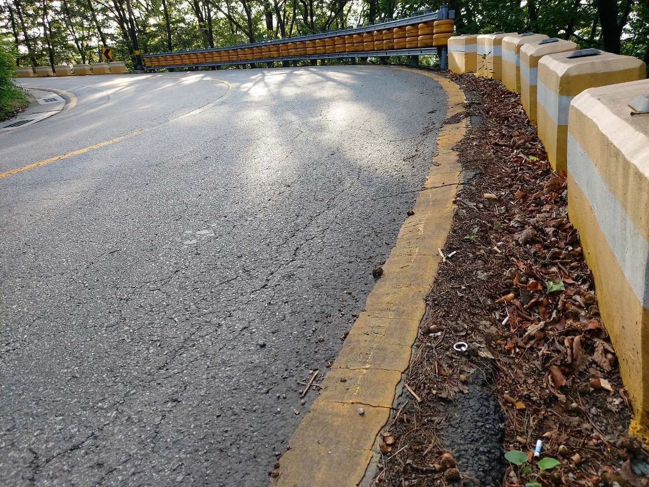 3.5km 왔는데 이미 쓰레기봉투 2/3가 찼다. 맞은편 길에서 쓰레기를 주으며 내려가기 위해서 되돌았다. 이제부터 내리막 길이니 발걸음이 빨라진다. 둘러맨 쓰레기봉투 안에서 찌그러진 음료수캔이 부딪히며 괴상한 소음을 연출한다.
