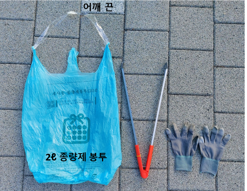 플로깅을 위한 준비물은 간단했다. 종량제 봉투와 장갑 그리고 집게. 나는 종량제 봉투를 메고 달리기 위해 끈을 부착했다. 마라톤 복장에 약간은 어색한 장비가 추가되었지만 개의치 않고 남한산성 길로 향했다. 장갑을 끼고 한 손엔 집게를 들고 어깨에 종량제 봉투를 메고.