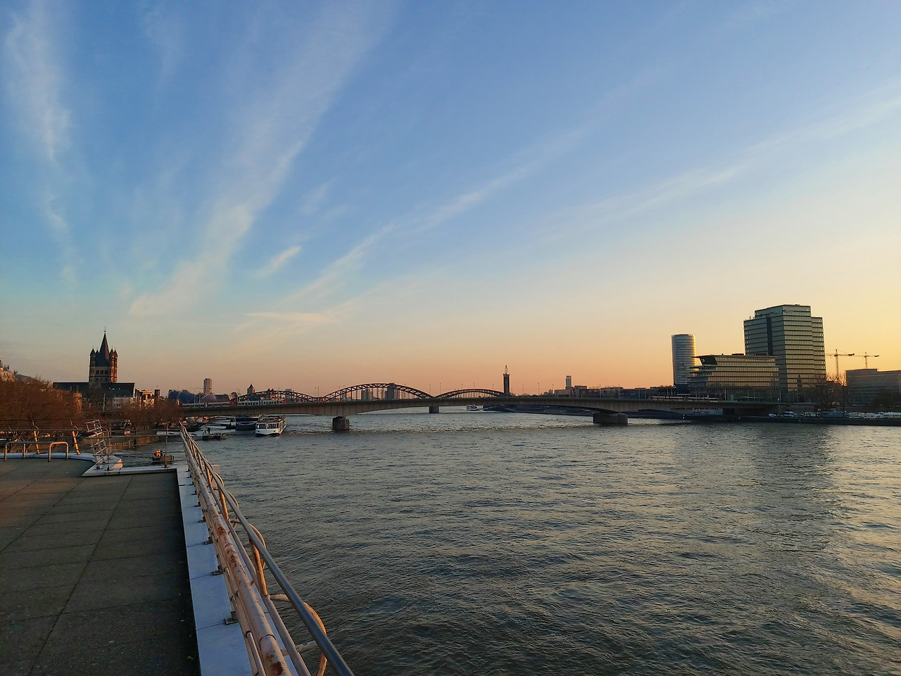 쾰른 성당은 라인강에 가까이 있다. 걸어서 5분이면 닿는다. 쾰른은 라인강을 끼고 도시가 발전했다. 2차 세계대전이 끝나고 독일의 비약적인 발전을 일컬어 라인강의 기적이라고 부른다. 라인강은 독일의 수도 베를린과는 멀리 떨어져 있다. 이번 여행에서 나는 처음으로 라인강변을 달릴 계획이다. 라인강은 스위스 남동부에서 시작하여 오스트리아를 지나 독일을 거쳐 네덜란드를 관통하여 북해로 빠져나가는 강으로 총길이는 1,320km. 라인강의 노을이 붉게 물들었다. 내일 아침 만나자며 호텔로 발길을 돌렸다.