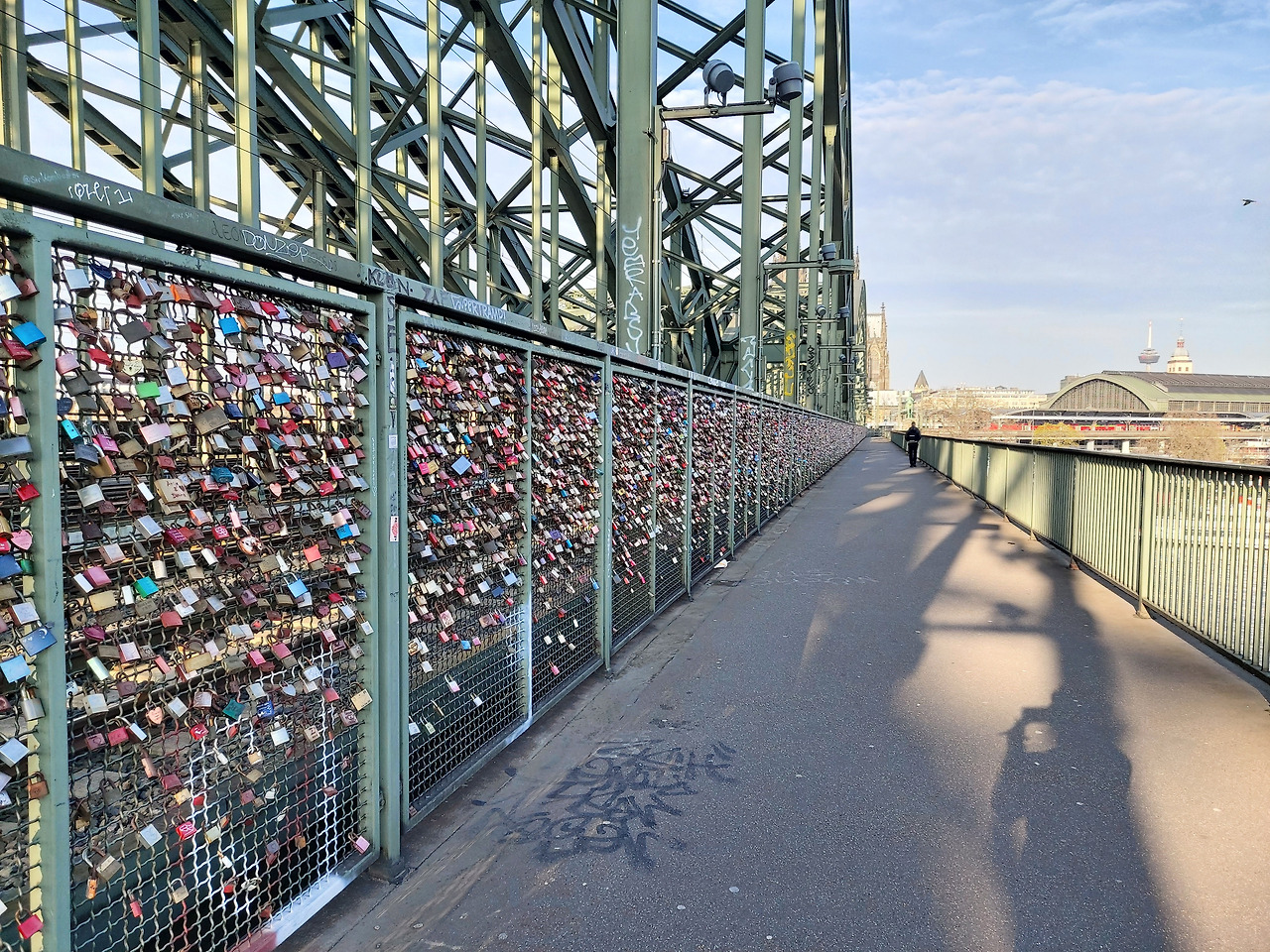 쾰른 라인강변에 달리는 사람이 적은 게 아쉽다. 가끔 만나는 달리미를 보면 인사하는 재미도 있는데 여간해서 달리는 사람을 만나기 어렵다. 쾰른 사람들은 다 바쁘게 사나 보다. 혼자 달리기에 익숙한 지 오래, 맑은 날씨에 아름다운 강변을 달리다 보니 절로 흥이 난다. 빨리 달리던 걸음을 잠시 멈췄다. 아름다운 경치를 눈에 담고 천천히 달리고 싶은 맘이 생겼기 때문이다. 하지만 나는 런너다. 나는 다시 달리기 시작했다. 오늘 거리는 12km. 반환점을 돌아 다시 쾰른성당을 바라보며 왔던 길을 되돌아 달렸다. 강 맞은편으로 달리기 위해 호헨졸렌다리로 올랐다. 다리에는 수많은 자물쇠가 매달려 있다. 누군가는 자물쇠를 매달며 소원을 빌었고 누군가는 서로 굳은 약속을 했겠지. 나는 내가 달리는 이유를 물으며 철제 다리를 달렸다. 그리고 내 인생 끝나는 순간까지 끝없이 달리자는 약속을 하면서 달렸다.