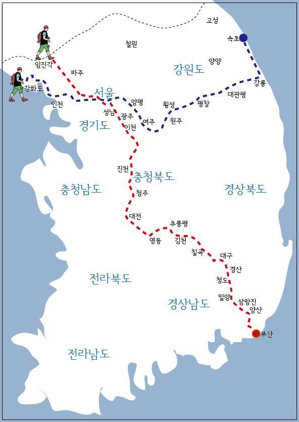 배낭 메고 24일간 걸어 국토 1000km를 종횡단한 58살 청년 이야기