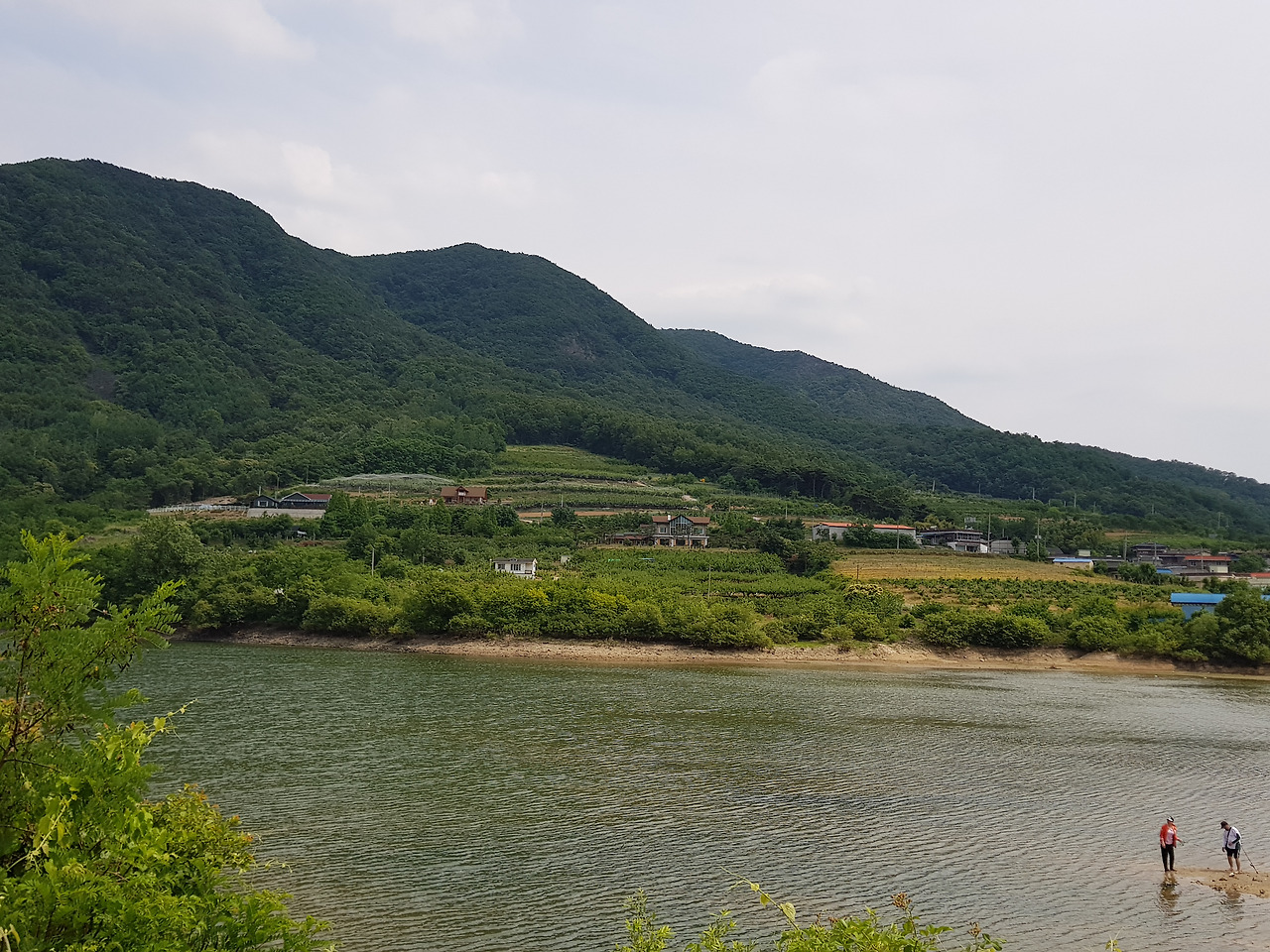 오늘이 9일 차, 임진각에서부터 정말 많이 걸어왔구나 하는 생각이 드니 지난 9일간의 시간들이 주마등처럼 스쳐 지나갔다. 빗속에 걸었던 4일 차 55.4km가 너무나 힘들었는데 마치 오래된 기억처럼 떠올랐다. 시간은 아픈 기억도 모두 아름답게 채색하여 돌려주나 보다. 이번 국토종횡단 도보여행에서 아름다운 기억만 쓴다 해도 쓸게 넘쳐 난다. 국토종단은 앞으로 5일 남았다. 두려움 같은 건 없어진 지 오래다. 마치 내가 몇 년을 이렇게 걸어온 것처럼 장거리 도보에 내 몸은 이미 익숙해져 있었다. 어느덧 남북저수지에서의 밤은 나를 아주 먼 아름다운 세상으로 끌고 가고 있었다.