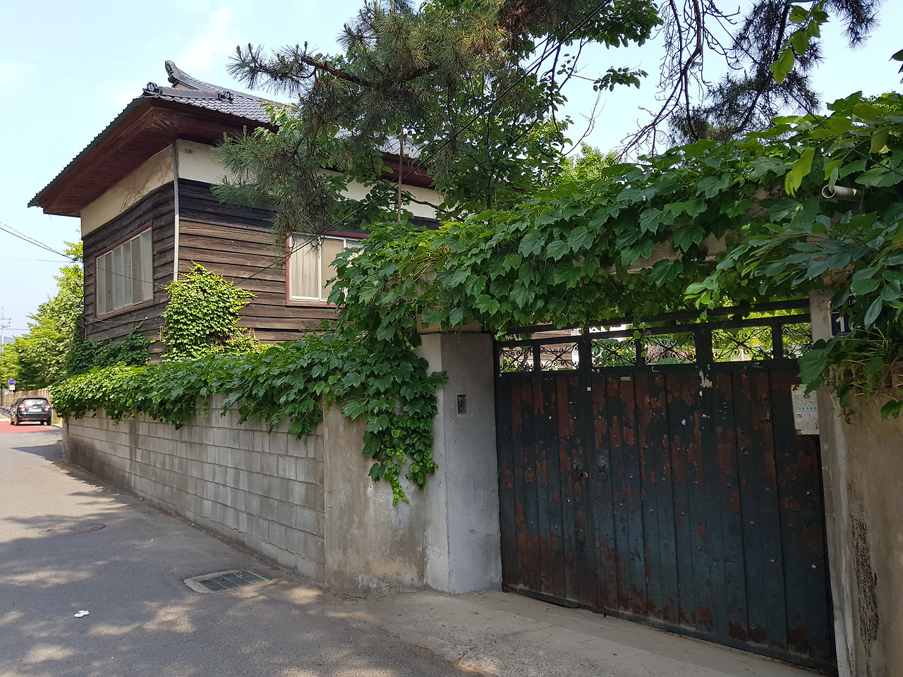 왜관읍에 하나 남았다는 일본식 가옥은 학교 운동장과 담벼락 하나로 붙어 있었다. 2층 집이었는데 2층은 분명 목재로 만든 일본식 가옥이었는데 1층은 벽돌로 보강했고 특히나 대문은 우리네 6,70년대 양옥의 대문이어서 집의 구조가 많이 변형된 듯했다. 이 집에 누가 살고 있는지 궁금해서 이웃 주민들에게 물어봤는데 모두 관심이 없었다. 일본식 가옥 앞은 고층아파트 단지로 변해 있었고 집 마당에 우뚝 자란 오래된 나무들만이 이 집의 역사를 말해 주는 듯했다. 그저 사람 사는 집이었다. 이게 왜(倭)의 냄새인가, 이걸 보려고 여기까지 걸어왔나 싶어 순간 허탈했다.