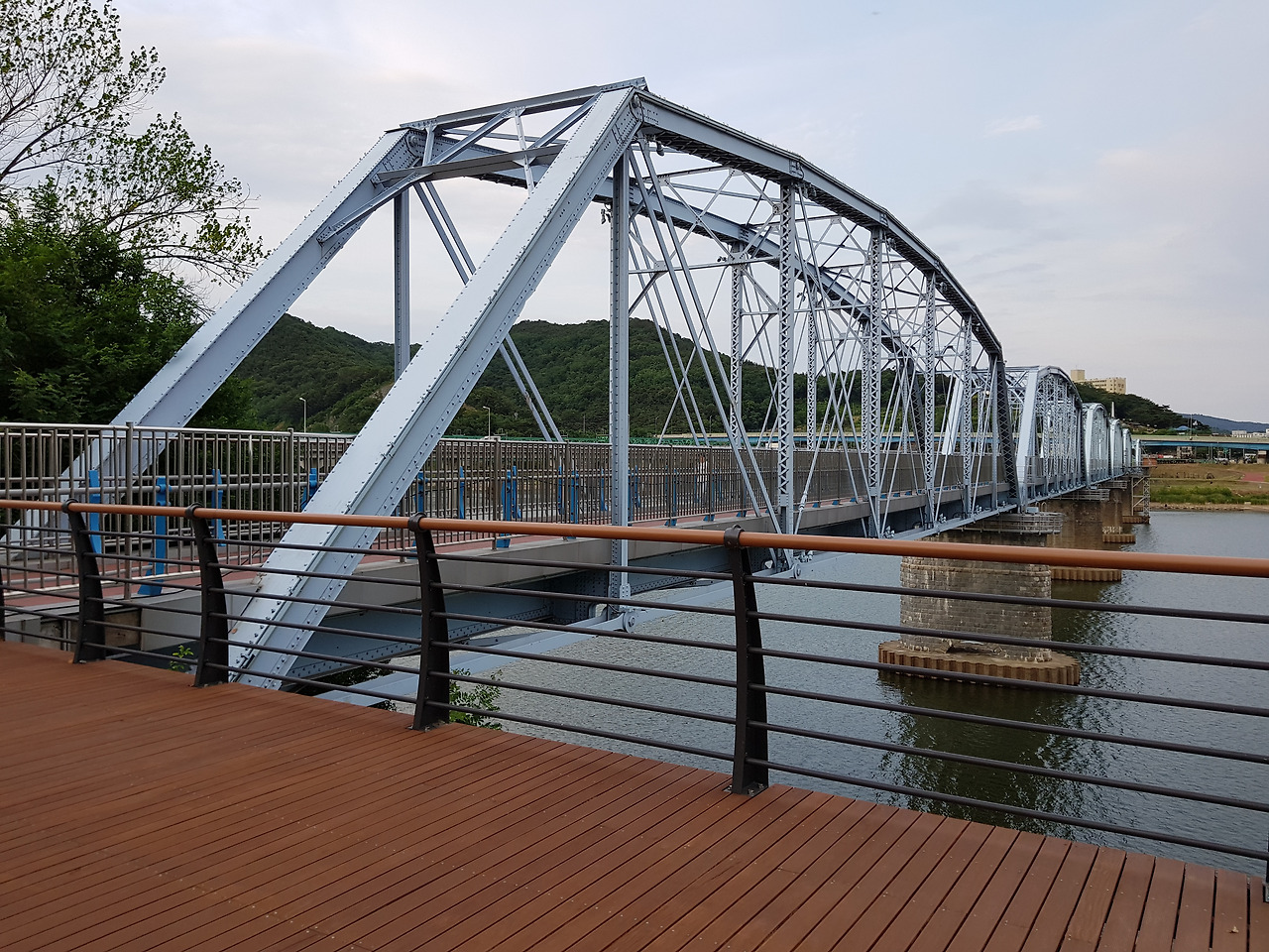 걸어왔던 칠곡대로를 직진하지 않고 좌측으로 꺾어지니 낙동강을 건너는 다리로 이어졌고 그 다리를 건너니 왜관읍. 무심코 다리를 건너며 보니 양쪽에 철교가 있는데 왼쪽은 열차가 지나가고 있고 오른쪽도 철교인 듯한데 사람들이 걸어 다니고 있었다. 나는 다리를 건너가서야 내가 걸어온 다리 양쪽에 놓여있는 철교에 대해서 알게 되었다. 다리 건너 우측에 두 철교에 대한 역사가 상세히 적혀 있었기 때문이었다.