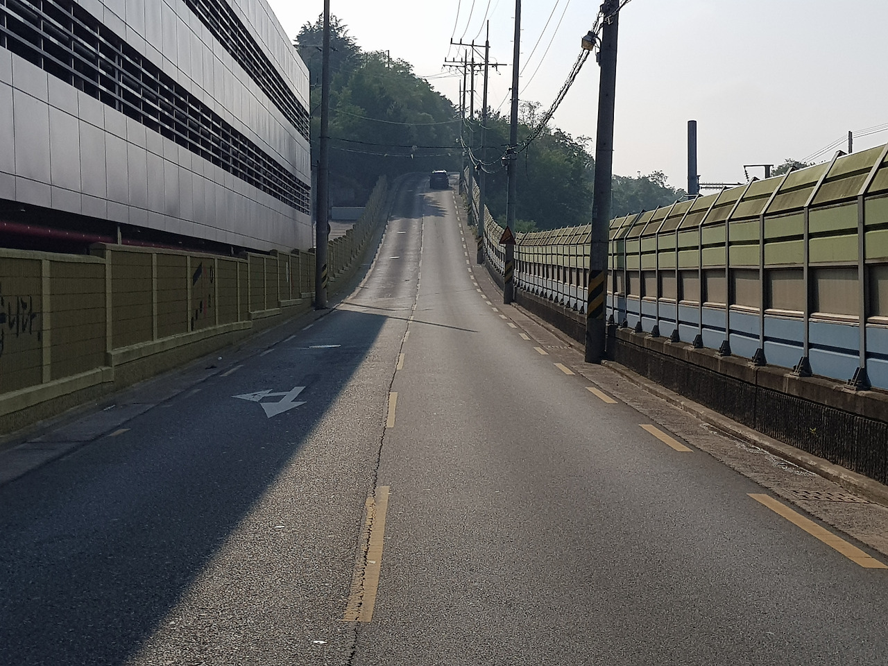 나는 큰길을 벗어나 금호강 쪽의 길로 들어섰다. 나무숲으로 가려져 금호강변은 안 보이고 왕복 2차선 좁은 길에는 차량이 뜸했다. 동대구역에서 얼마 안 걸었고 여기도 대구일 텐데 길이 너무 한적했다. 길을 잘못 들었나 싶었지만 걸은 지 얼마 안 되었기에 계속 앞으로 걸었다. 눈앞에 조그만 고개가 보였다. 좌측 기찻길 옆 담벼락에 비 내리는 고모령이라고 쓰여 있었다. 고개라고 보기에도 그렇고 그런 언덕 수준의 고개였다. 고모령은 유행가 노래 가사로 유명한데 괜히 이 고개를 넘는구나 생각이 들 정도로 노래와는 어울리지 않는 언덕길이었다.