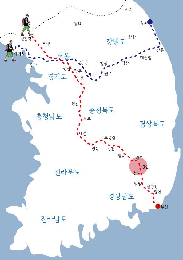 배낭 메고 24일간 걸어 국토 1000km를 종횡단한 58살 청년 이야기