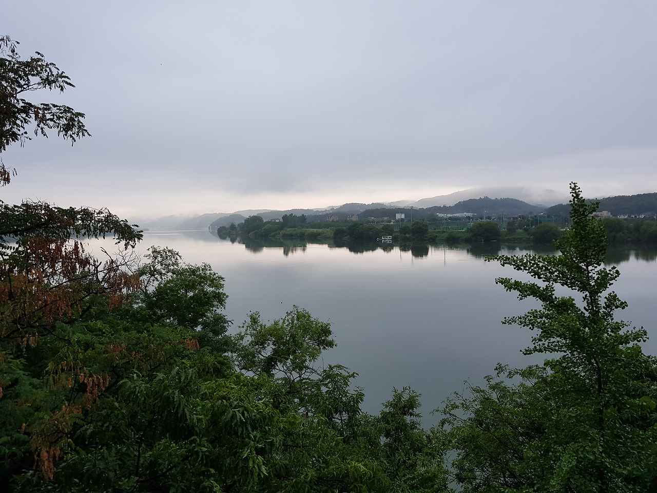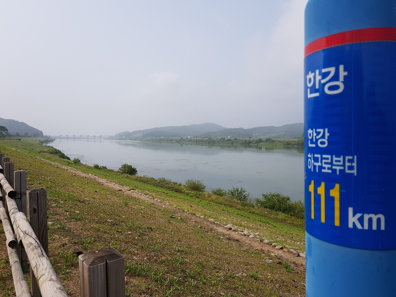 나는 양평읍 남한강 자전거 길을 걷으며 국토횡단 5일차, 국토종횡단 19일차의 여정을 시작했다. 강화도 초지대교를 건너 강화해협을 따라 걸어 서해 인천의 한강 어구에 닿아 한강을 짜라 3일간 걸어 여기까지 왔다. 그 한강은 여기서부터는 남한강, 북한강이라는 이름으로 갈라진다. 나는 국토종단 자전거 길의 이정표를 따라 여주, 충주 방향으로 걸었다. 남한강의 풍경이 아침 안개를 머금고 아름답게 펼쳐졌다.