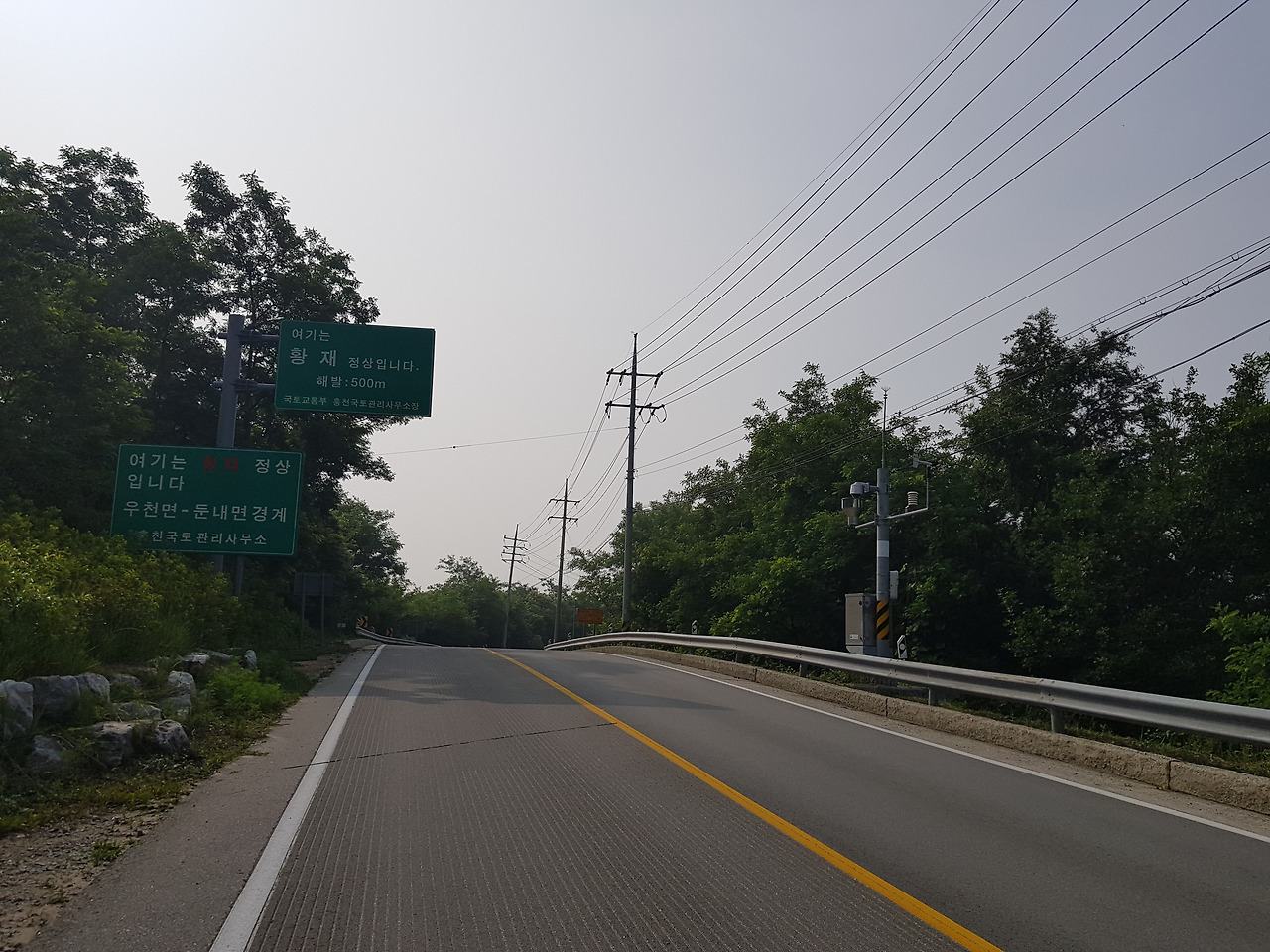 어제 걸어왔던 6번 국도를 따라 걸으며 국토횡단 7일 차를 시작했다. 이 길을 계속 걸으면 횡성군 둔내면에 도착한다. 아침 6시 반을 조금 넘긴 시간, 아침 세상이 모두 내 것이었다. 나는 신이 나서 일부로 갈지자로 걸어보기도 했다. 조금씩 오르막인 거 같긴 한데 경사가 있다는 느낌은 안 들었다. 방금 걷기를 시작하기도 했고 아침 기분도 한껏 고조되어 있으니 웬만한 고개는 어렵지 않게 넘어가겠다 싶기도 했다. 2,3km를 더 가니 진짜 고개다. 경사가 급한 고갯길이 이어졌다. 경사도가 5~6%는 될 듯했다. 황재(일명 황고개). 해발 500m의 낮지 않은 고개였다. 어린 아이 기분으로 아침 황고개를 넘는 발걸음은 가벼웠다.