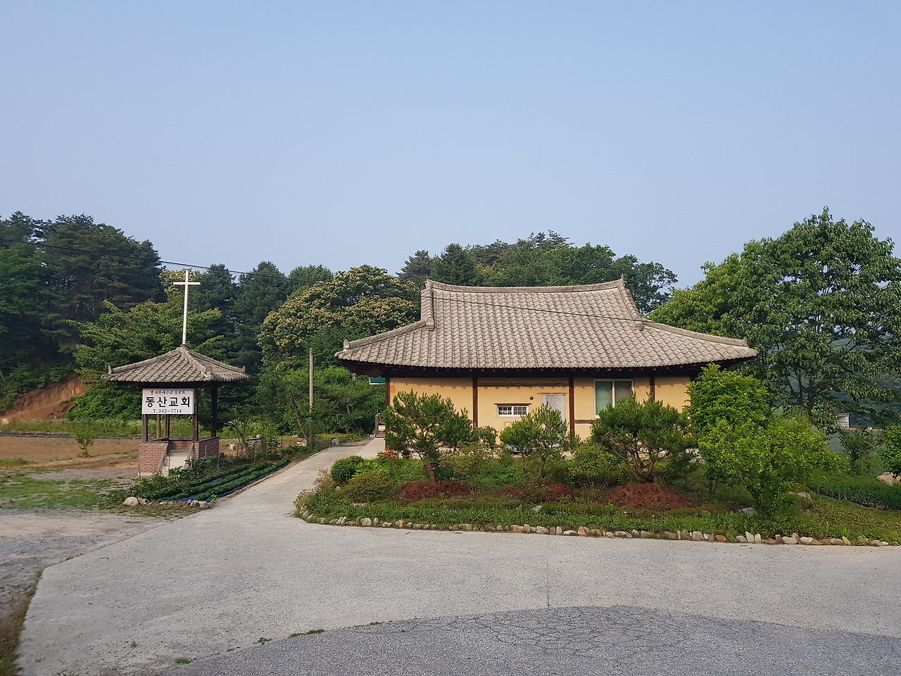 서울에서 목회 활동하다가 18년 전 고향인 이곳으로 이주하며 한옥모양으로 교회를 지었으며 현재 신도는 15명인 교회. 주변에 집이라고는 눈을 씻고도 찾을 수가 없는데 이나마 모인다는 게 신기했다. 나이 드신 목사 부부가 커피를 내왔다. 강원도는 대부분의 마을이 성황당을 믿는 전통으로 전도가 어렵다며 처음에는 부부 두 명이서 예배를 봤단다. 한옥으로 지은 연유를 묻자 그냥 한옥이 좋아서라고 목사님이 대수롭지 않게 얘기한다. 처음에는 십자가도 안 달았는데 가끔 차타고 지나가던 사람들이 이곳이 식당이냐고 물어서 달게 되었단다.