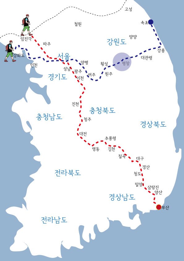 배낭 메고 24일간 걸어 국토 1000km를 종횡단한 58살 청년 이야기