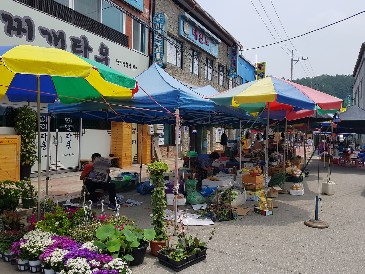 한 시간 뒤에 둔내 면내에 도착하면 허기도 있을 테니 벌써 입안은 군침이 돌았다. 둔내 면내는 크진 않지만 아늑하고 소박한 시골 장터의 느낌이었다. 번잡한 걸 싫어하는 나는 조그만 읍내, 면내에 오면 정서적으로 안정감이 느껴진다. 우선 나는 둔내 면내를 한 바퀴 돌아보고 시골 면의 분위기를 느껴 보았다. 걷다 보니 역시 맘이 차분해졌다. 짜장면 집을 찾아보기로 했다. 면내는 터미널을 중심으로 일이백 미터 내에 모든 게 있어 중국음식점은 금방 찾을 수 있었다. 둔내터미널 맞은편에 있었다. 아침 6시 50분에 출발하여 13km를 걸었고 황고개 동산교회에서 한 시간 머물다 왔으니 오전 11시 조금 넘은 시간이었다. 점심이 약간 이르긴 하나 허기도 느껴지고, 오후에는 오늘의 두 번째 고개인 해발 890m의 청태산 고개를 넘어야하기에 든든히 먹어야 했다. 짜장면은 바로 나왔다. 곱빼기의 양이었다. 밑바닥까지 긁어 비웠더니 내가 안쓰러웠는지 방금 한 밥이 있다며 준다는데 짜장면의 양이 얼마나 많은지 더 먹을 수가 없었다. 알고 보니 주인은 내가 국토횡단 하는 걸 알고서 면을 곱빼기로 담은 것이었다. 중국집 주인은 장평 가는 청태산 넘는 길을 자세히 가르쳐주었다. 그는 산이 꽤 높고 경사가 길게 이어져 걷기에 만만치 않으니 조심해서 넘으라 했다.