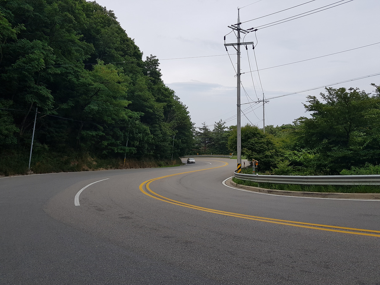 하지만 이 계산은 대관령을 뛰어 내려가면서부터 뒤틀리기 시작했다. 내리막을 뛰던 내 두 다리가 제대로 작동하지 않았기 때문이었다. 갑작스런 오른쪽 허벅지의 경련이었다. 대관령의 내리막은 경사가 급한 곳은 경사도가 최대 13%로 다리를 내딛기가 더욱 힘들었다. 그러다 보니 내리막길이 평지보다 느렸다. 나는 허벅지 근육통이 심하면 잠시 서서 쉬다가 나지면 다시 걸으며 내리막길을 뛰지 않고 걸어 내려왔다. 속사고개를 뛰어 내려왔던 오전 하고는 너무나 다른 상황이었다. 당황스러웠지만 빨리 걸을 수도 없었기에 나는 그저 한발 한발 천천히 내디딜 수밖에 없었다.