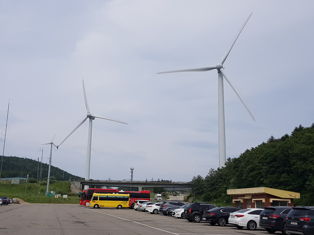 황태국밥으로 점심을 하며 40여분을 쉬었다. 식당의 손님들이 신기한 표정으로 나를 쳐다봤다. 나는 그들의 시선을 애써 외면하고 나와서 다시 뛰기 시작했다. 456번 국도를 뛰고 또 뛰었다. 횡계리에서 대관령고개까지의 길은 평평하다고 느낄 정도로 아주 완만한 오르막길이었다. 횡계리에 도착했을 당시 나는 이미 상당히 높은 곳에 와있던 것이었다. 저 멀리 대관령 풍력발전기가 보였다. 거기가 바로 대관령휴게소.