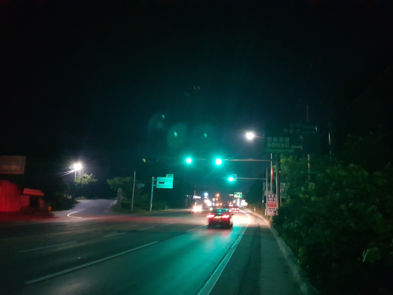 강릉시 오죽헌을 오른쪽에 두고 돌아 뛰어 강릉과학일반산업단지를 지날 때 시간은 이미 밤 8시를 넘었고 사위는 어두워 자동차 불빛에 기대어 조심해서 뛰어야 했다. 7번 국도 동해대로를 밤 시간에 달리는 건 매우 위험했다. 그만큼 차량도 많고 차들도 빨리 달렸다. 주문진항은 6km 남았다. 가끔씩 지나는 차들이 나에게 위험하니 이 길로 뒤지 말라는 듯 상향등을 올렸다 내렸다 했고, 내 옆을 지날 땐 경적까지 울려댔다. 하지만 나는 뛸 수밖에 없었다. 오늘의 목적지 주문진항까지는 이 길이 가장 빠른 길이기 때문이었다.
