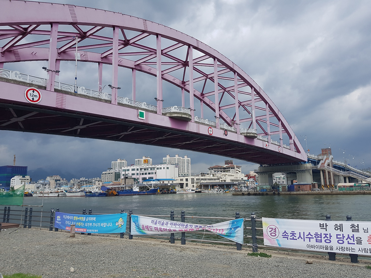 우리는 오늘 아침 하조대해수욕장을 떠나오며 피날레를 잠깐 얘기했다. 하지만 피날레는 둘이 마지막 날을 걷는 거로 충분하다는 결론이었다. 그리고 우리는 속초항에서 마침표를 찍은 후 아바이마을에 가서 순댓국을 먹기로 했다. 그래서 지금은 참아야 했다. 이곳에서 속초항까지는 약 7km. 우리는 대포항을 구경삼아 안쪽으로 들어가 한 바퀴 돌아 뒷길로 나와 속초해수욕장 방향으로 걸었다. 그리고 속초해수욕장을 지나쳐 아바이마을로 들어섰다. 아바이마을의 갯배가 보였다. 갯배는 오래전 청호대교가 생기기 전 사용했던 뗏목 수준의 바지선이다. 와이어를 끌어당기는 동력으로 이동하는데 이 배가 없으면 50m 정도 되는 거리를 5km 넘게 빙 돌아가야 했다. 이북에서 내려와 끈질긴 생명력을 이어간 아바이마을은 내가 걸은 1,000km의 도전은 아무것도 아니었다. 그 아바이들은 아직도 청년을 살고 있는지 모른다.