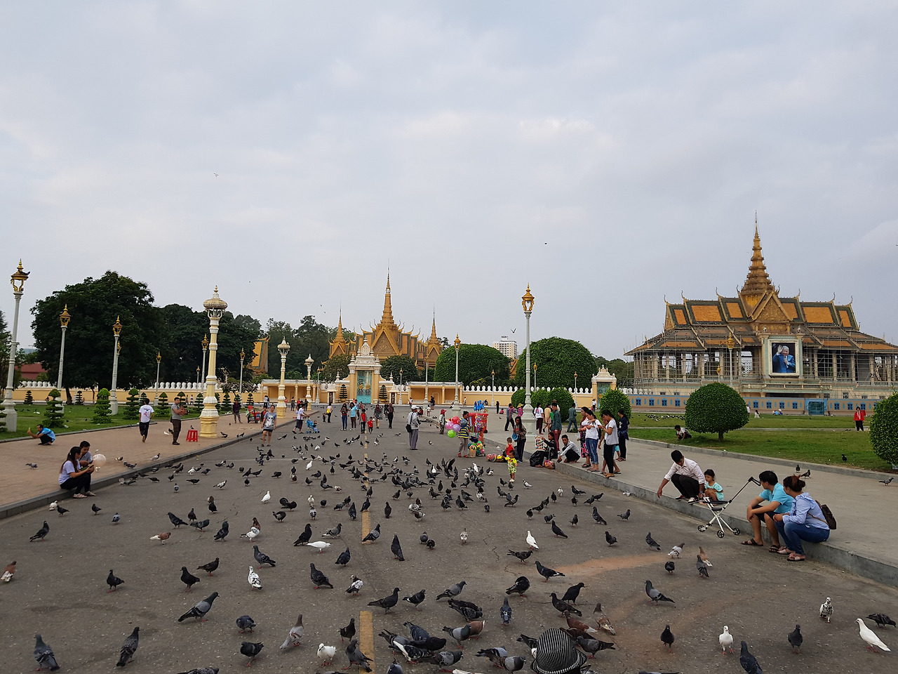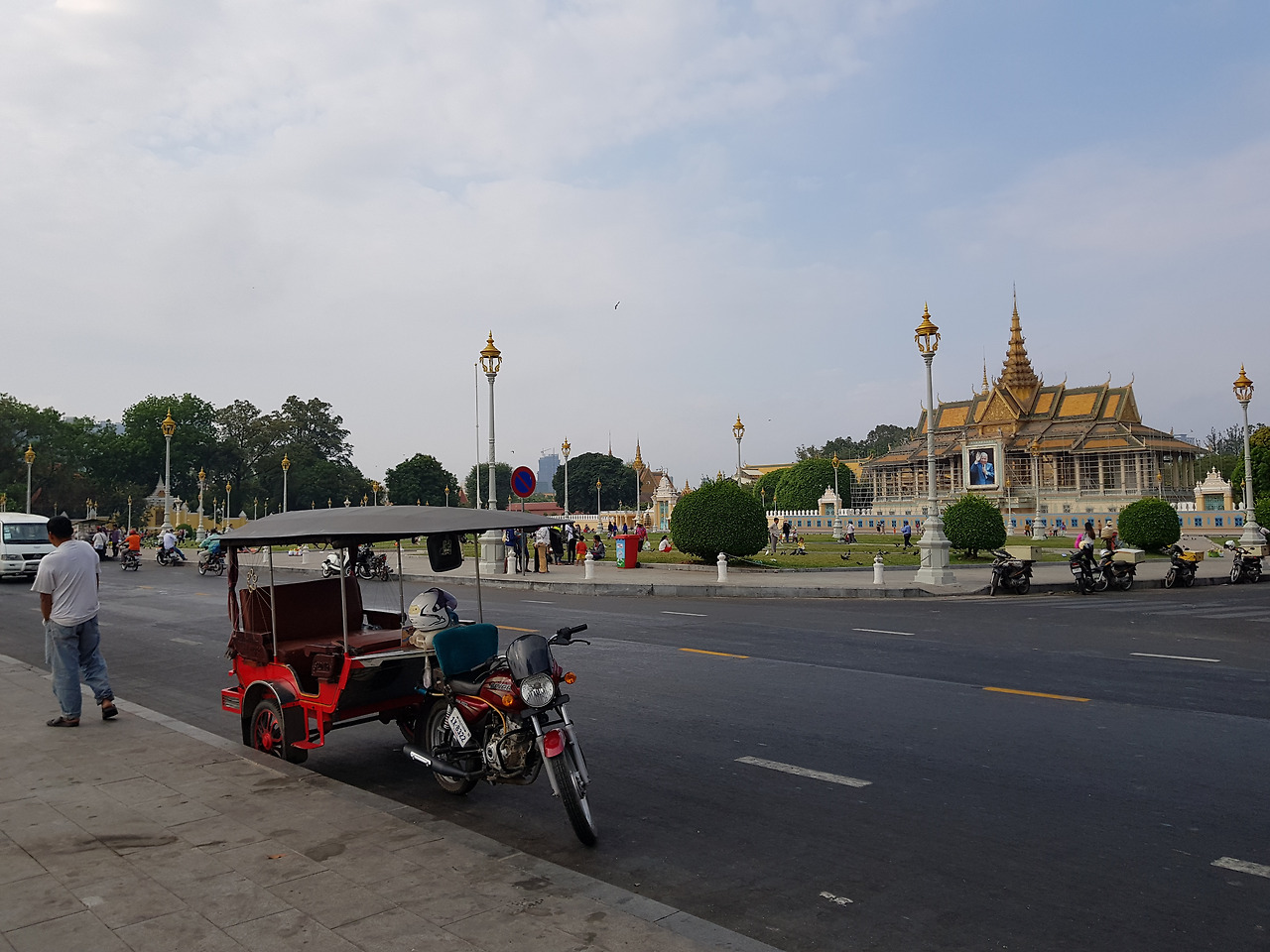 나는 왕궁 주변길을 달렸다. 이 길은 차량도 안 다니고 산책 나온 캄보디아인(혹은 캄보디아인 여행객)도 많이 보인다. 왕궁은 담이 높아 안의 면적을 가늠하기 어려울 정도지만 그렇다고 위협적인 건축양식을 띠진 않았다. 현재 왕궁에는 국왕인 "노로돔 시하모니"가 거주하고 있다. 이 왕궁은 1866~1870년 프랑스 식민지 시절 지어진 것으로 프랑스 스타일에 캄보디아 전통양식이 어우러진 형태다. 왕궁 안의 벽화도 프랑스 화가들이 그렸다고 한다.