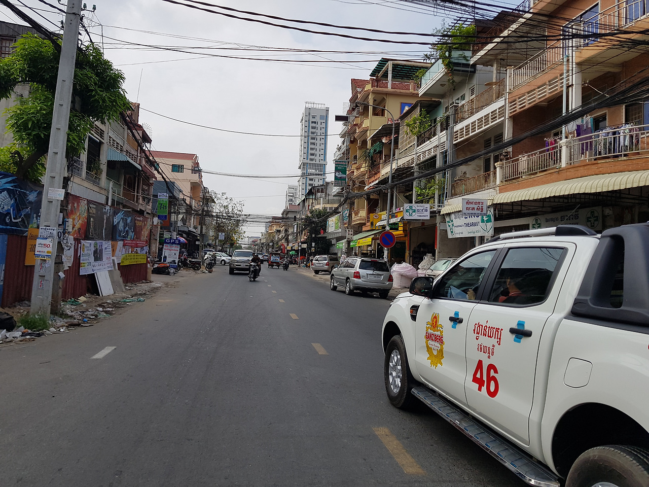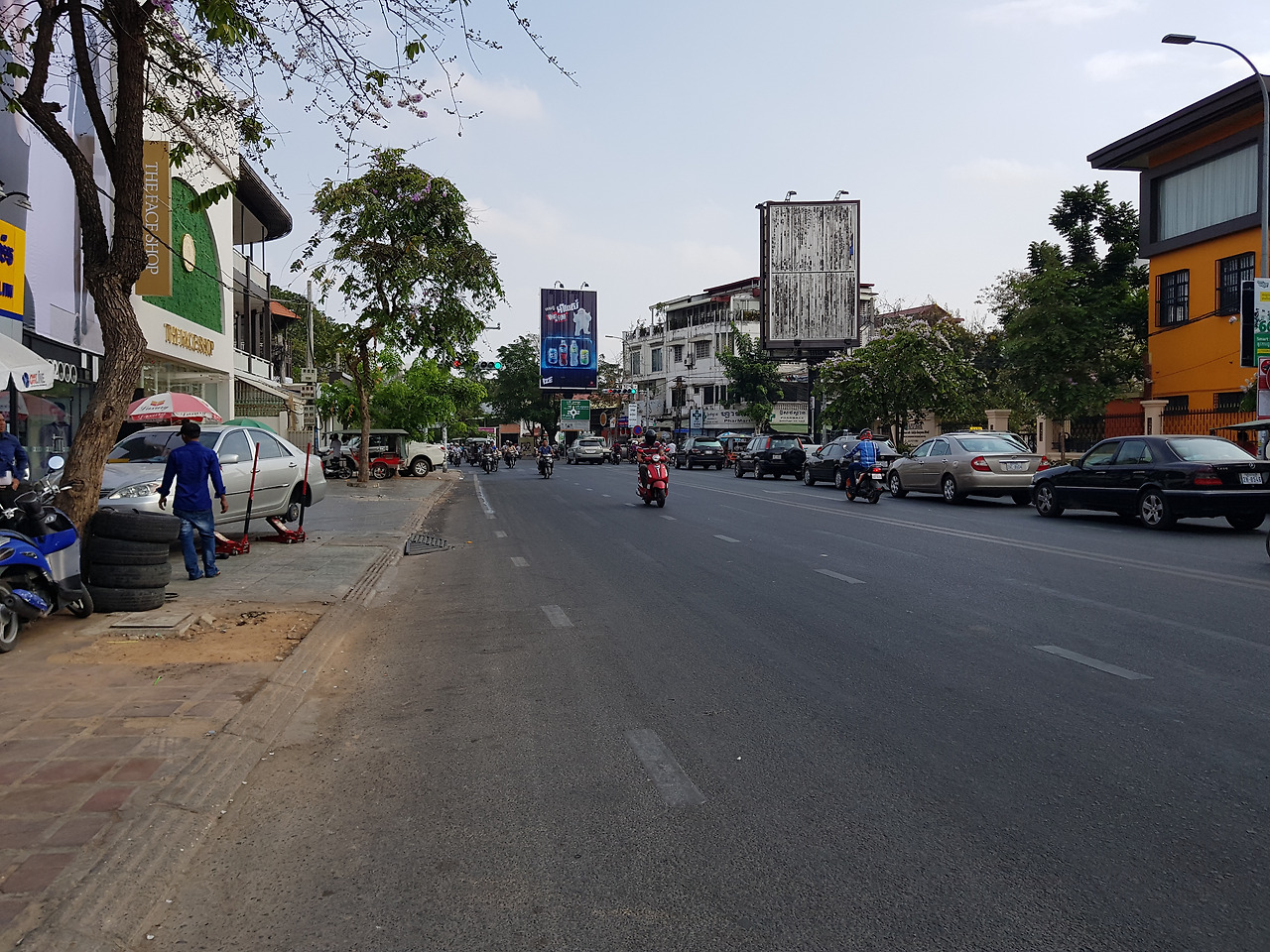 이미 핸드폰 맵으로 프놈펜 시내를 익혔고 종이 지도도 하나 장만하였으니 길을 잃고 달릴 걱정은 없다. 집 앞을 나서니 역시나 도로 사정은 그다지 좋지 않았다. 인도는 가게에서 내놓은 상품이 점유하고 있고 도로 곳곳이 파이고 깨져 차도 갓길로 달리는데 오토바이와 톡톡, 그리고 차들과 같이 섞여 달리는 느낌이다. 다만 도로가 그러다 보니 모두들 속도를 내지 않고 달리는 게 그나마 다행이다.