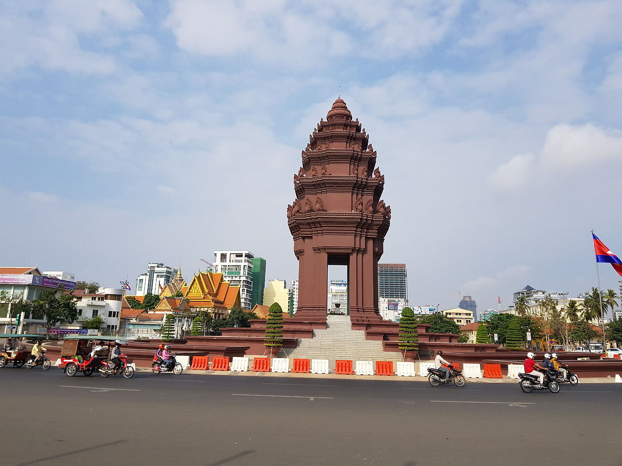 캄보디아-베트남 우호탑. 저멀리 왕궁이 보인다