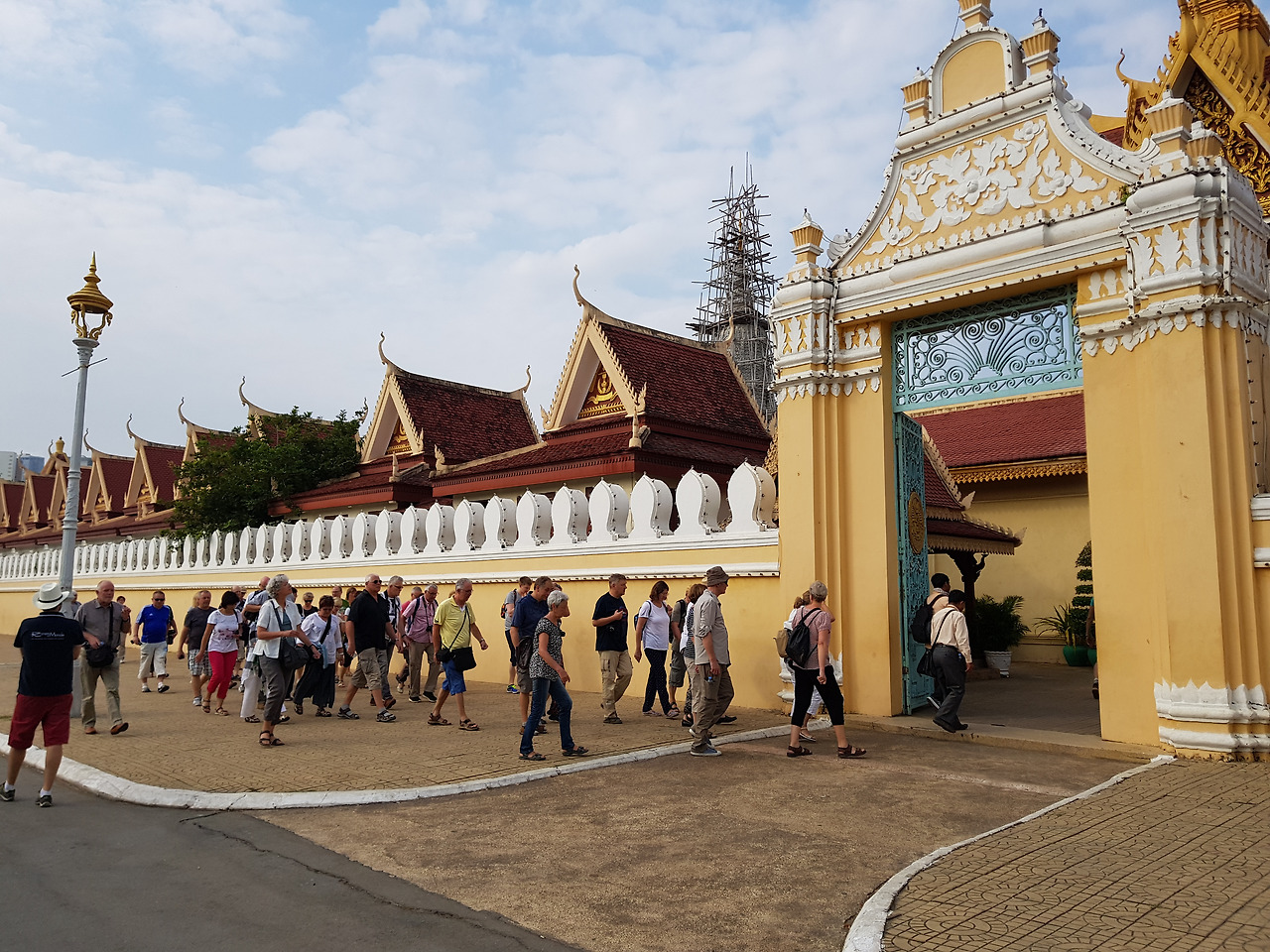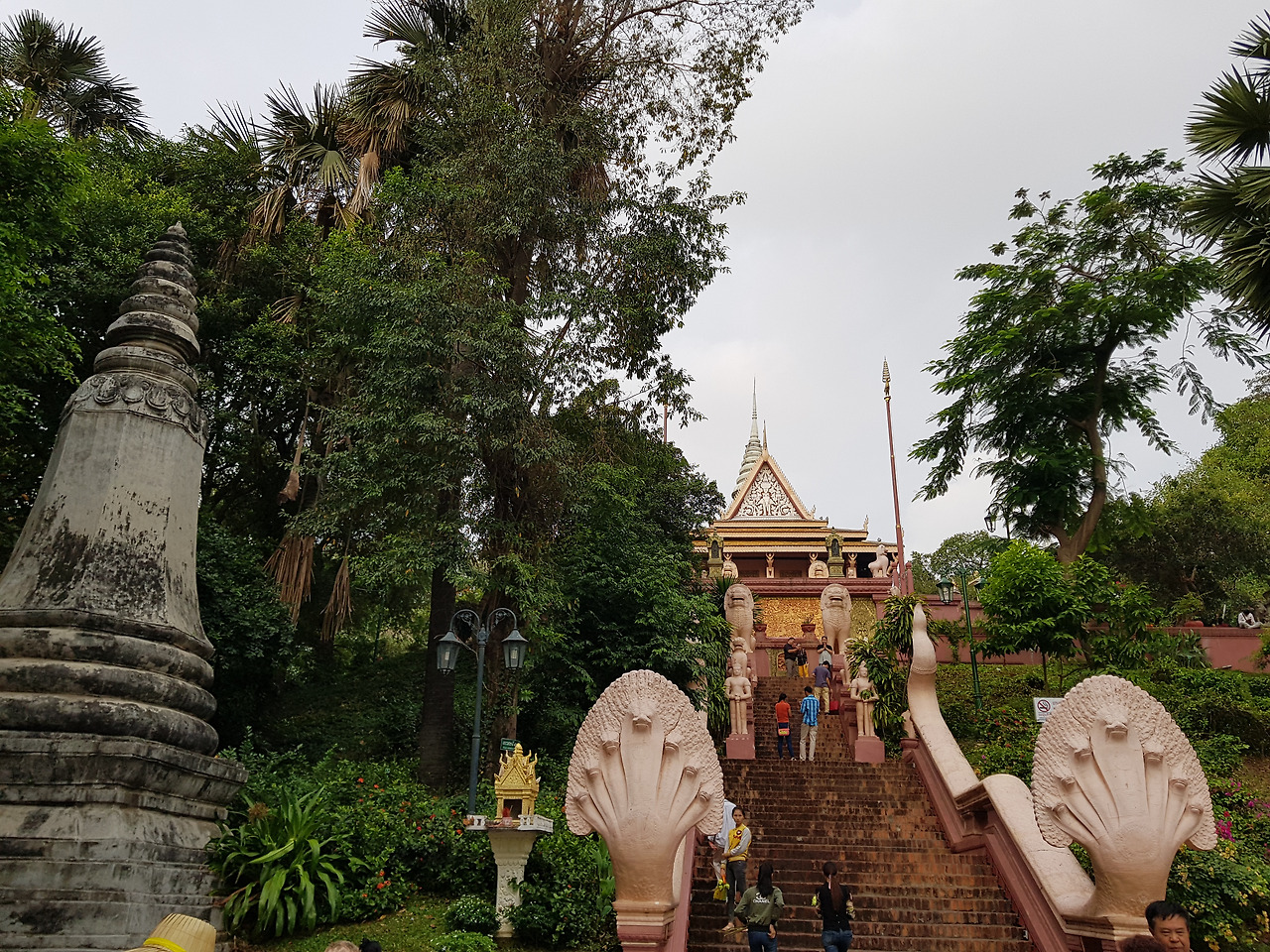 나는 오늘 달리며 프놈펜의 많을 것을 보고 느꼈다. 어느덧 시간은 7시 반을 넘어가고 있었다. 나는 마지막 목적지인 "왓프놈"을 향해 달렸다. 왕국에서 왓프놈까지는 1km 조금 넘는다. 프놈펜이라는 말은 곧 내가 닿을 왓프놈에서 유래되었다. 옛날 "펜"이라는 이름의 부인이 홍수에 강을 따라 흘러 내려온 불상을 건져 언덕(프놈)에 사원(왓)을 지어 극진하게 모셔 그 후 이 언덕을 프놈펜으로 불렀다.
