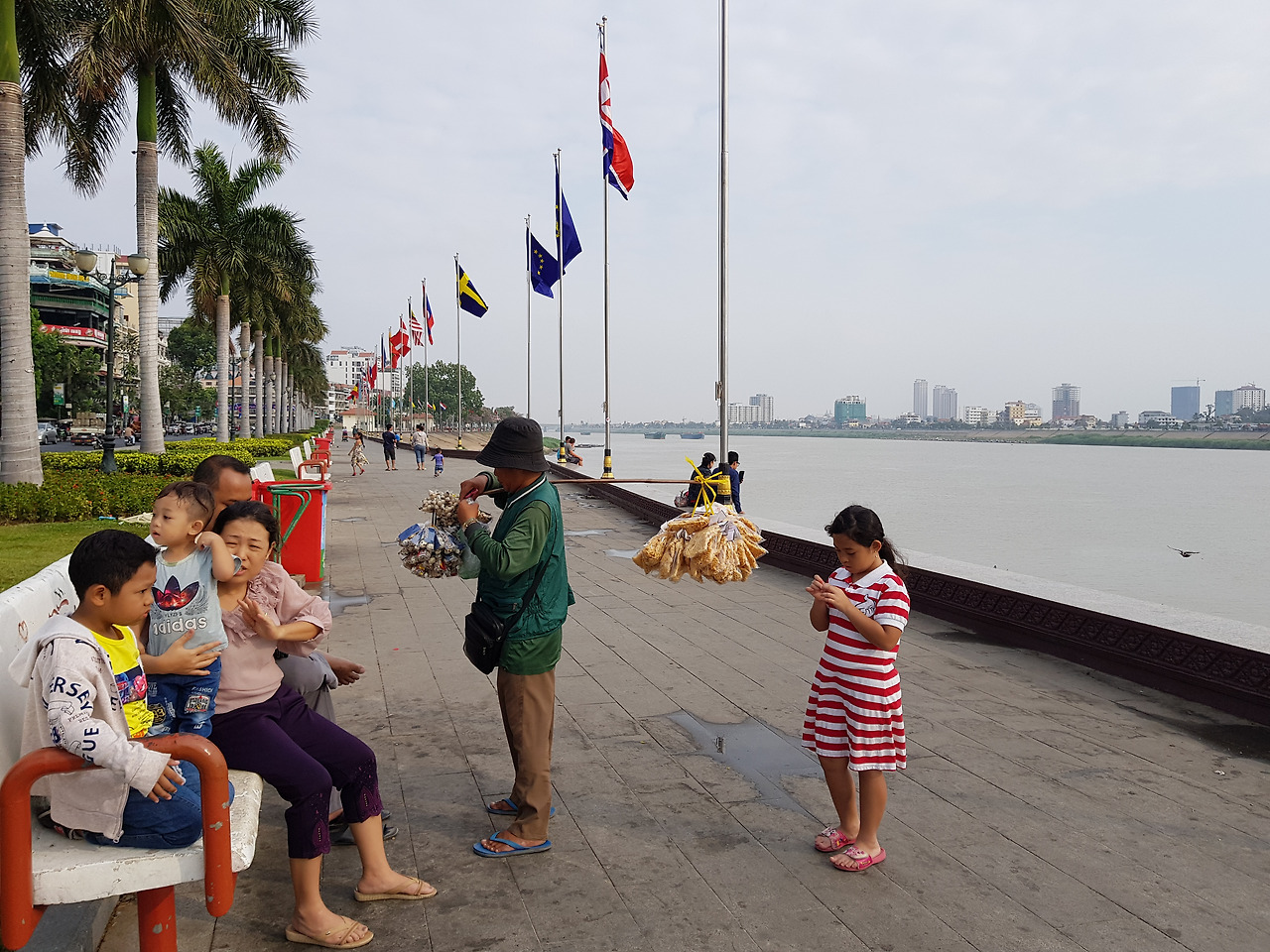 한 블록을 돌아 나오니 저 멀리 왕궁이 보인다. 그 앞에까지 이어진 공원에는 캄보디아-베트남 우호 기념탑이 우뚝 서있다. 캄보디아와 베트남은 한국과 일본처럼 앙숙인데 공원에 이런 탑이 있는 건 정치적 의도가 다분히 느껴진다. 하지만 어떠랴. 싸우는 거 보단 서로 잘 지내는 것이 좋은 거니까.