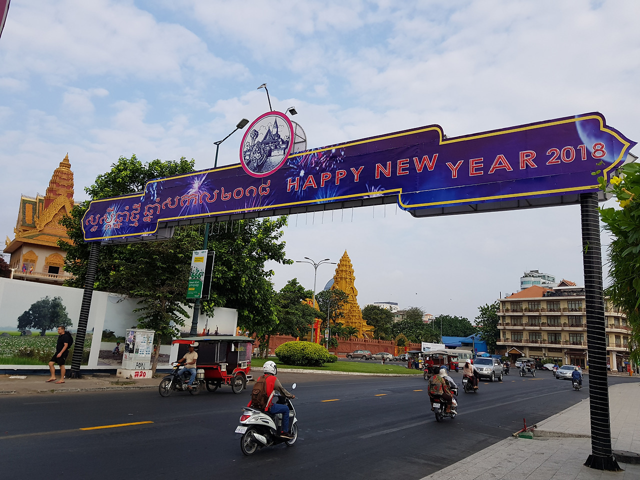 왓프놈으로 달리던 중간에 본 "happy new year"가 새롭다. 캄보디아는 새해를 쫄츠남이라 하여 매년 4/14~4/16이 캄보디아의 설날이다.