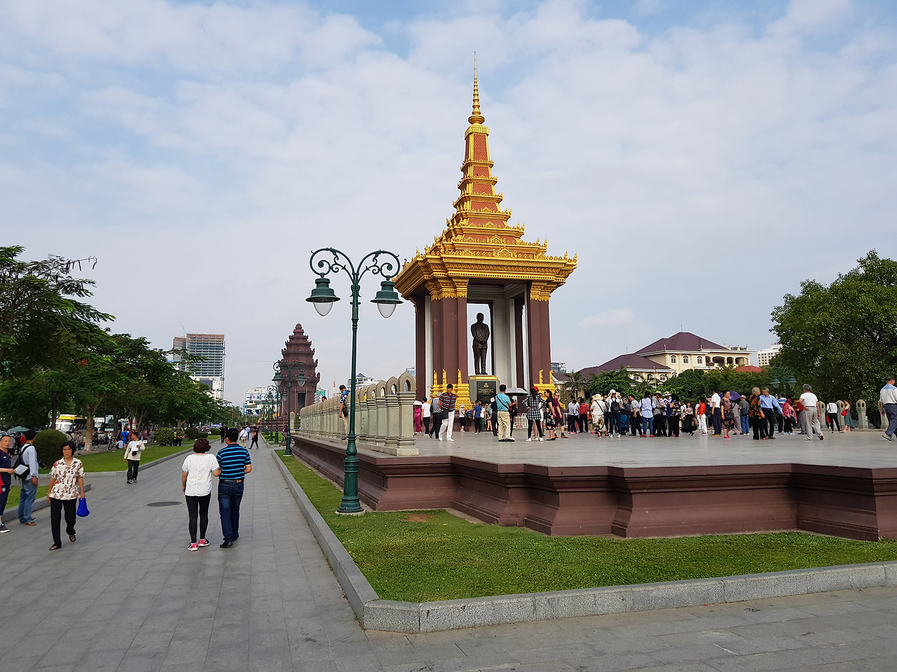 독립기념탑에서 똔레샵 강으로 향하는 공원의 노르돔 시아누크 국왕 동상