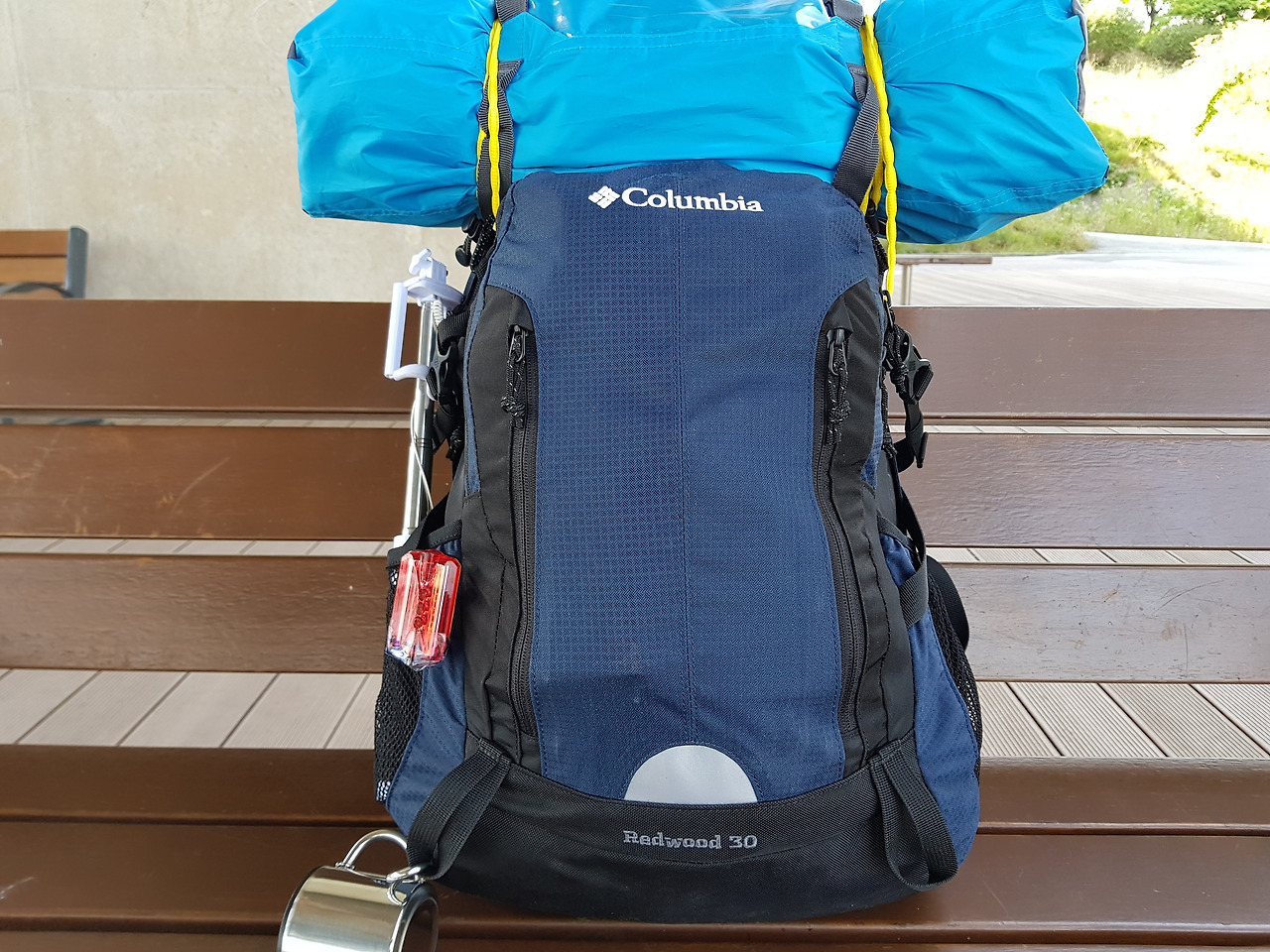 내 배낭은 30L 배낭으로 배낭만의 무게는 1.2kg, 이번 도보여행을 위해 최적의 크기와 무게를 고려하여 새로 준비했다. 텐트는 배낭 위에 별도로 맸다. 그래서 총배낭의 무게는 10~12kg 정도. 배낭의 무게를 줄이기 위해 가장 고민했던 건 텐트, 텐트는 1인용 텐트로 아주 가벼운 것으로 하자니 어떤 것은 바람에 날아갈 듯 허접했고 좋은 잠자리를 위한다면 2kg이 훌쩍 넘었다. 나는 그중에서 무게 1.4kg의 초경량 텐트로 준비했다. 펴고 접기도 간편하고 높이도 낮은, 1평 넓이가 채 안 되는 텐트였다. 초경량이다 보니 한 사람만 누울 정도의 면적이다. 무게를 줄이기 위해 배낭과 텐트 안쪽에 붙어있는 라벨도 가위로 잘라냈다. 침낭은 900g, 코펠 600g, 소형 가스버너 450g , 부탄가스 300g , 생수 2개 1kg , 배터리 손전등 핸드폰 충전기 등 900g, 먹거리 1.2kg (햇반, 빵, 초코바, 사탕, 라면, 햄, 김치 등), 의류 1.6kg (긴 바지, 반바지, 속옷, 수건, 바람막이 점퍼, 비옷, 양말), 기타 의약품 외 800g. 줄이고 줄여도 10.5kg. 10kg을 넘기지 않으려고 했지만 아무리 줄여도 그 이하는 안 되었다. 장거리 도보에서 배낭의 무게는 자기 몸무게의 1/10이 가장 적당하다는데 야영을 위해서는 이 정도의 배낭은 나에게는 최소의 준비였다. 내 배낭의 무게는 10kg을 최소로 그때그때의 도보환경에 따라 1~2kg은 더 늘어났다.