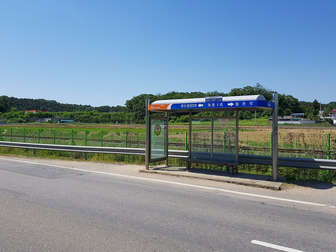 임진각 자유의 다리에서부터 이곳 문산 통일공원까지는 7.5km. 첫날이라 무리하지 않고 천천히 걸으며 시작했고 통일로가 비교적 넓은 차선으로 쭉 뻗어있으며 갓길도 자전거가 다닐 정도로 넓어 여유롭게 걸을 수 있었다. 일요일이라 그런지 라이더들도 많아 손인사도 나누며 걸었다. 화창한 일요일, 라이더는 힘차게 페달을 밟으며 지나갔고 몇몇 라이더는 나의 행색을 보고 장거리 도보자인 줄 아는지 파이팅을 외치며 지나갔다. 파이팅 소리를 들으면 나는 혼자가 아닌 누군가와 늘 함께 있다 라는 생각이 들어 더 힘이 났다. 정오를 넘기면서 햇빛이 따갑게 내리쪼여 온도를 보니 32도였다. 아스팔트 지열이 더해 더위가 더 강열하게 느껴졌다. 하지만 이 정도 더위는 앞으로도 매일 겪어야 하는 더위였다. 나는 선캡을 목덜미까지 내려쓰고 쉬지 않고 아래쪽 파주 방향으로 걸었다. 배낭의 무게는 출발 전 익숙해지기 위해 4개월 훈련기간에 몇 번 메고 10여 km씩 걸었던 적이 있기에 섧게 느껴지지는 않았다.