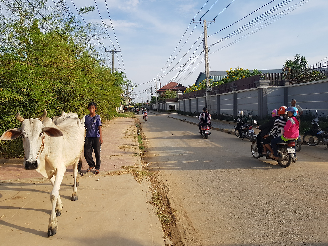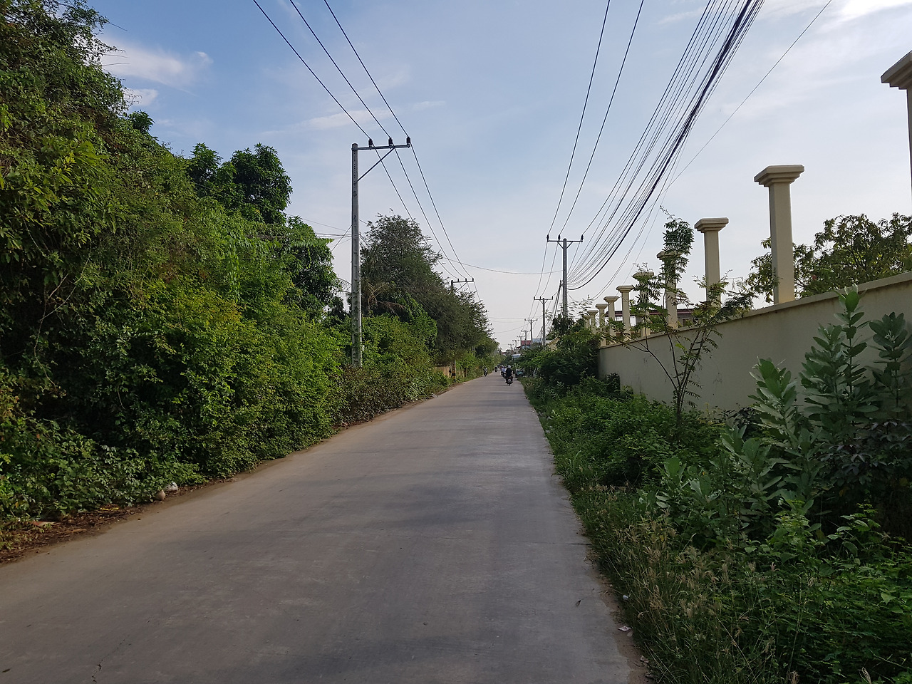 나는 4km 정도를 찻길 골목길 꾸불꾸불 뛰며 와 킬링필드 가는 길로 접어들었다. 이제부터는 한 길로 계속 뛰어가기만 하면 된다. 40여 년 전 이 길은 죽음을 싣고 달리는 차량만이 다니던 공포의 길이었다. 나는 여기서 부터는 자연스레 킬링필드의 상념에 젖으며 뛰었다. 여기 오기까지는 복잡한 길을 찾아 돌고 꺾고 하면서 왔기에 킬링필드 가는 길 느낌은 없었다. 이제 나는 오늘의 목적에 맞게 뛰고 있다. 이 길은 인적은 드물고 가끔씩 가는 오토바이만이 있다. 외국인을 태운 톡톡이 한대가 내 곁을 지나갔다. 나는 뛰어 가지만 그들은 톡톡이를 이용해 프놈펜 시내에서 킬링필드를 보고 돌아 가는 길이었다.