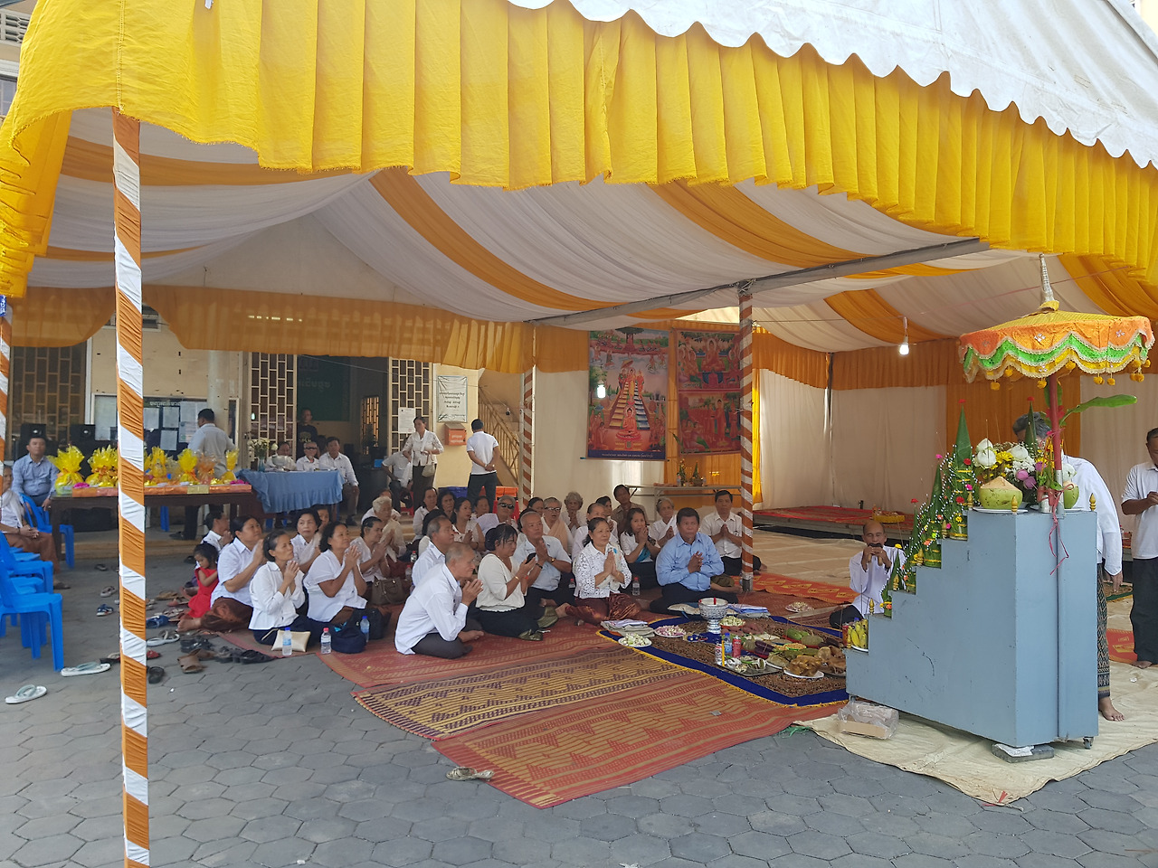 1.5km 지점에서 복잡한 5 거리를 지나 큰길을 건너면 작은 골목길로 접어든다. 복잡한 오거리 한편의 건물 앞 공터에서 결혼식이 있어 많은 사람들이 모여 결혼식을 거행하고 있다. 캄보디아에서는 결혼식 때 노천에 큰 천막을 치고 결혼식을 하며 그 자리에서 피로연도 한다. 그래서 결혼식 비용도 꽤 많이 든다. 특히 남자가 이 비용을 다 부담해야 하기에 요즘 프놈펜 같은 대도시에는 돈 때문에 결혼을 안 하는 젊은이들이 점점 늘고 있다
