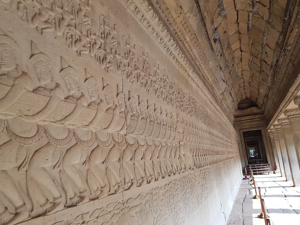 이렇게 달려 서쪽에서 다시 바라본 앙코르왓. 아침에 봤던 느낌과는 다른 나 혼자만이 느끼는 옛 크메르 제국의 모습이다. 나는 잠시 안으로 들어가 회랑을 걸어 보았다. 금방이라도 누군가 말을 걸어올 거 같은 선명한 문양들.. 흔적들..