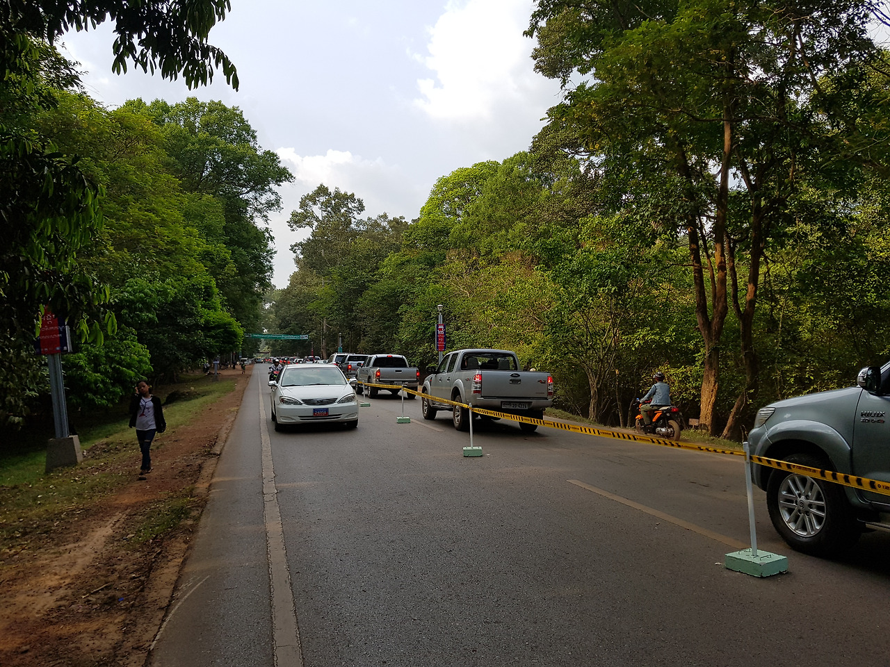 해자가 앞에 보이고 오른쪽 길에서 오던 차 들도 꽉 막혀 있다. 나는 오던 길을 뒤돌아 보고 우측에서 끝도 없이 서있는 차들을 보며 천천히 앙코르왓 입구인 서쪽 문 방향을 향해 뛰었다. 호텔에서 여기까지는 5km.