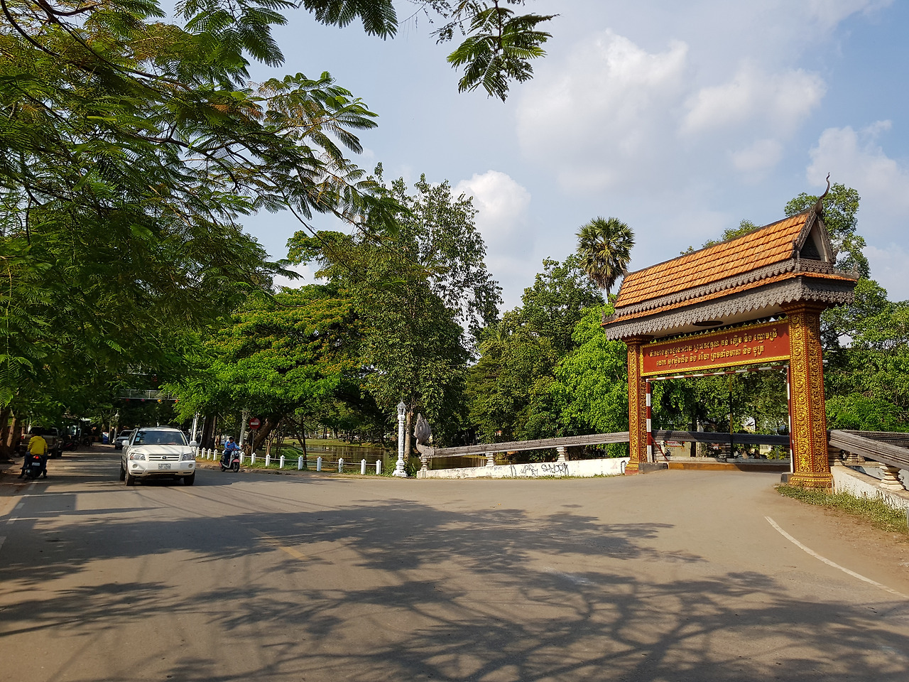 호텔을 나온 나는 천천히 뛰기 시작했다. 37도의 무더위에 페이스 조절 없이 처음부터 빨리 뛰다가는 중간에 어떻게 될지 몰라 오늘은 시간에 구애받지 말고 뛰기로 했다. 먹는 물은 앙코르왓 가는 길 노점에서 많이 팔기에 걱정은 덜었다. 호텔에서 앙코르왓 입구인 서쪽 해자 까지는 6.5km. 씨엠립 시내는 한낮 더위에 지쳤는지 거리는 한산하다.