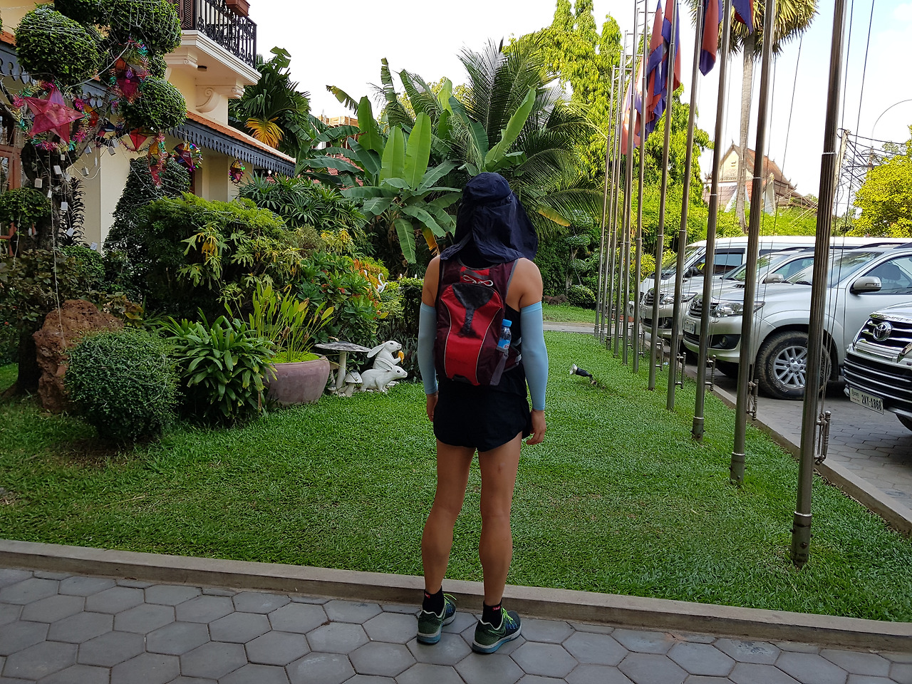 이른 아침에 일어나 앙코르왓으로 향하며 나는 잠시 뒤 뛰게 될 지금의 도로를 버스 안에서 유심히 관찰했다. 사실 구글맵이 너무나 상세하고 정확하기에 요즘은 웬만한 곳은 지도 없이도 다닐 수 있다. 그래도 나는 크메르 제국의 흔적을 찾기라도 하는 듯 차창 밖을 세심하게 관찰했다. 오전 가이드 관광을 마쳤다.세 곳의 관광을 마치고 점심을 먹고 두 시 반경에 호텔에 들어온 나는 샤워를 하고 30분 정도 쉬었다. 밖의 온도가 너무나 더웠기에 수많은 관광객들도 앙코르왓을 보면서 더위에 힘들어했다. 하지만 뛸 때 나는 더위를 긍정하며 뛴다. 그래서 괜찮다. 샤워를 마친 나는 잠깐 잠이 들었다. 잠에서 깬 나는 옷을 갈아 입고 선크림과 바셀린을 바르며 뛸 준비를 한다. 한낮의 온도가 37도를 가리키고 있어 단단히 무장하지 않으면 안 된다. 특히 땀이 나서 살이 겹쳐 쓰라린 허벅지나 겨드랑이는 바셀린을 듬뿍 발랐다. 무더위에 남자들의 젖꼭지는 더 무용지물이다. 땀에 스치면 쓰라림이 이만저만이 아니다. 그래서 젖꼭지에 바셀린을 바른 후 일회용 밴드를 그 위에 붙인다.