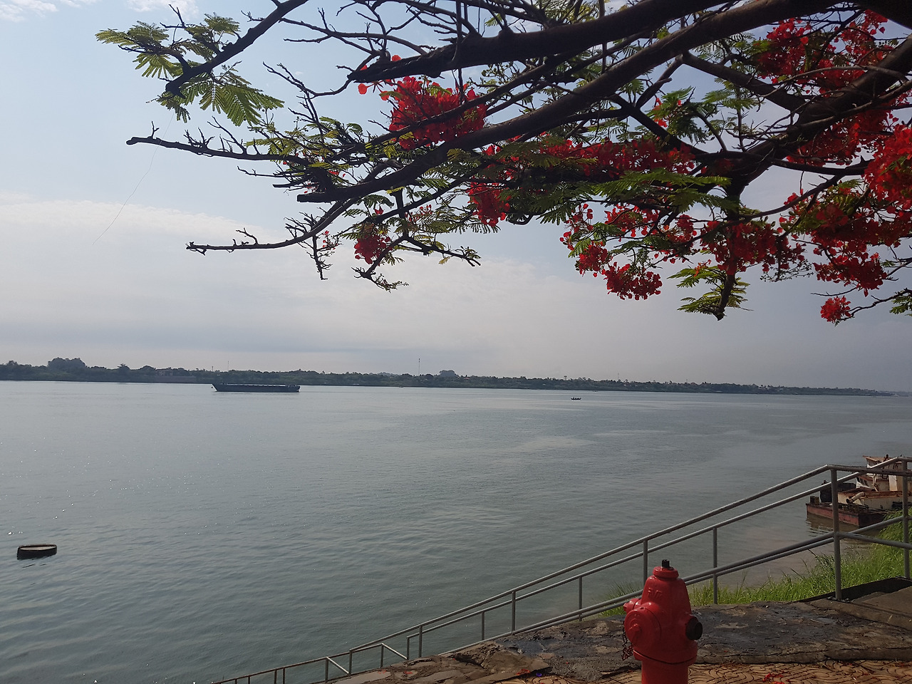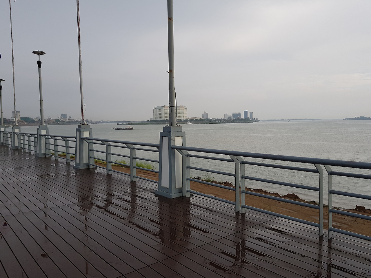 비는 계속 뿌렸다. 하지만 메콩강을 달려 보겠다는 나의 맘은 비도 개의치 않는다. 그래서 뛰는 걸음은 가볍다. 2km 정도를 더 뛰니 저 멀리 큰 강이 보인다. 숙소에서 여기까지는 약 4.5km.