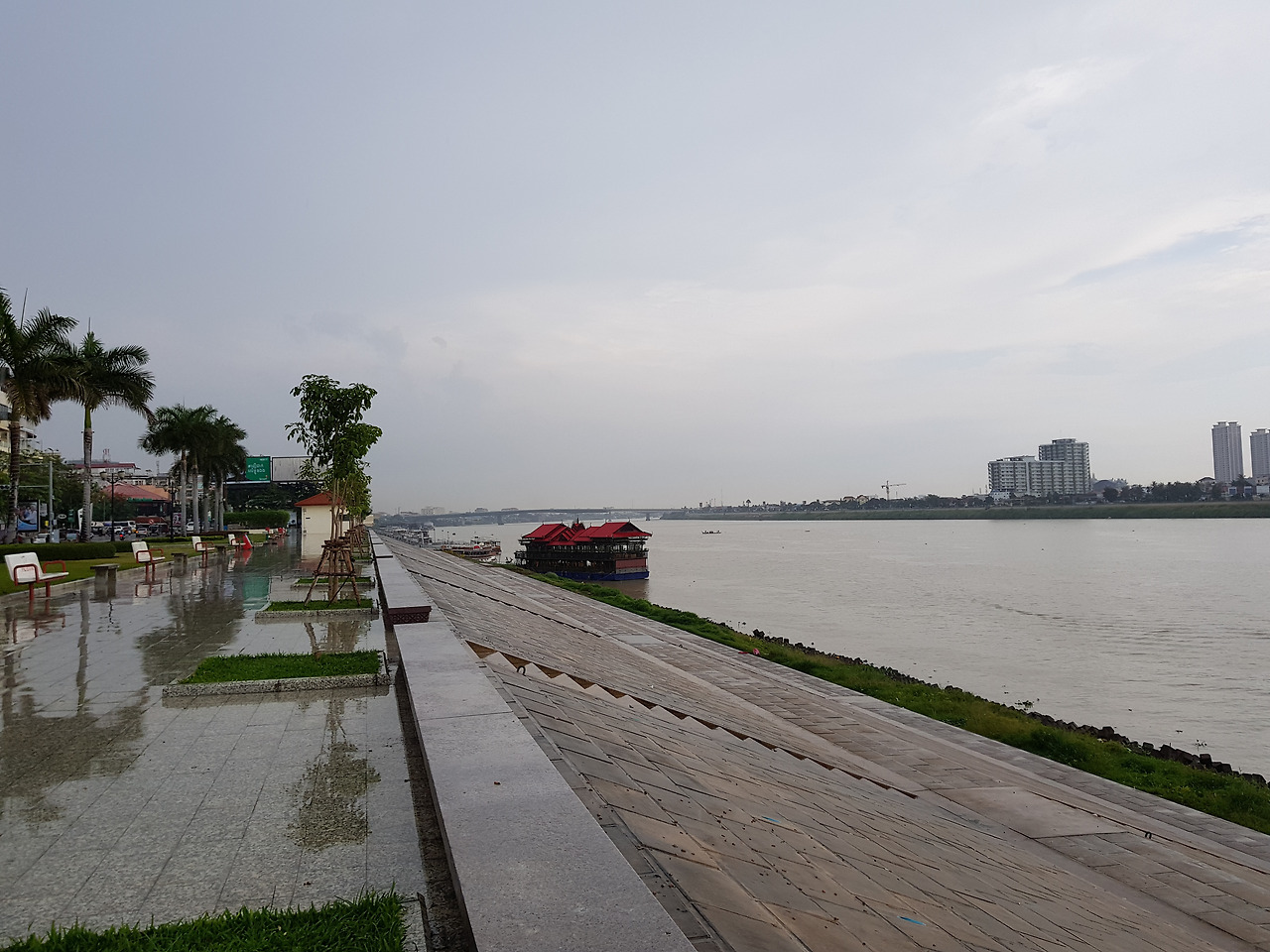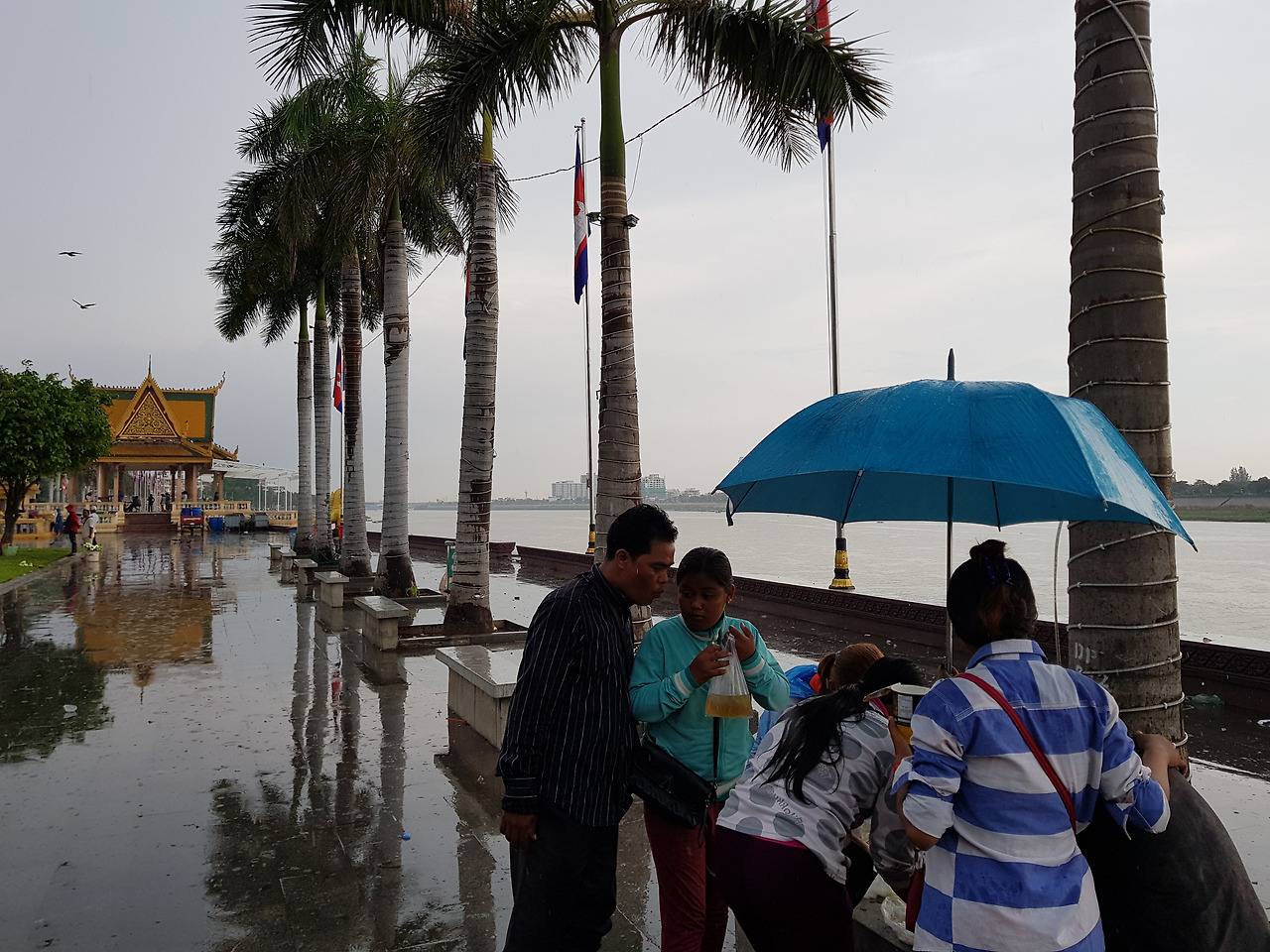 왕궁 앞 강가의 야자수 나무는 빗물을 흠뻑 머금고 아름다움을 뽐내고 있다. 한 폭의 그림이다. 어디서 왔는지 가족들이 모여 비닐봉지의 아침밥으로 아침을 먹는 모습을 보니 뭔지 모를 뭉클함이 밀려든다. 왕궁 앞 이곳 강가에는 수많은 사람들이 놀러 오지만 구걸하는 사람들, 한 끼 식사조차 제대로 못한 것 같은 모습의 아이들도 많이 보인다. 마치 메콩강 그늘의 예고편인 듯...