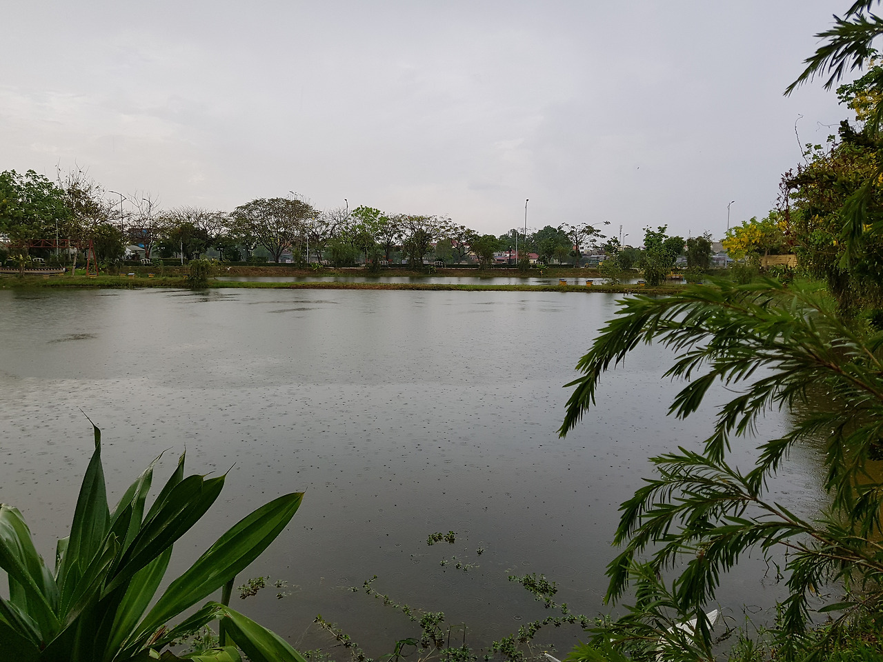 왕궁까지 뛰어서 가면 그 앞은 메콩강과 돈레삽강이 합류하는 지점으로 거대한 강물이 나를 반긴다. 나는 두 달 프놈펜에 있으며 서너 번은 산보 삼아 그곳까지 가보곤 했다. 오늘은 왕궁이 종착점이 아닌 중간 지점인 셈이다. 집에서 왕궁까지는 직진해서 달리면 4.5km인데 오늘은 왕궁 가기 전 강가로 접어들어 강을 끼고 길게 돌아 뛸 계획이기에 나는 평소 가던 왕궁 가는 길에서 2km를 앞두고 우측으로 꺾어 돌았다. 한참을 달리니 아담한 호수가 보인다.