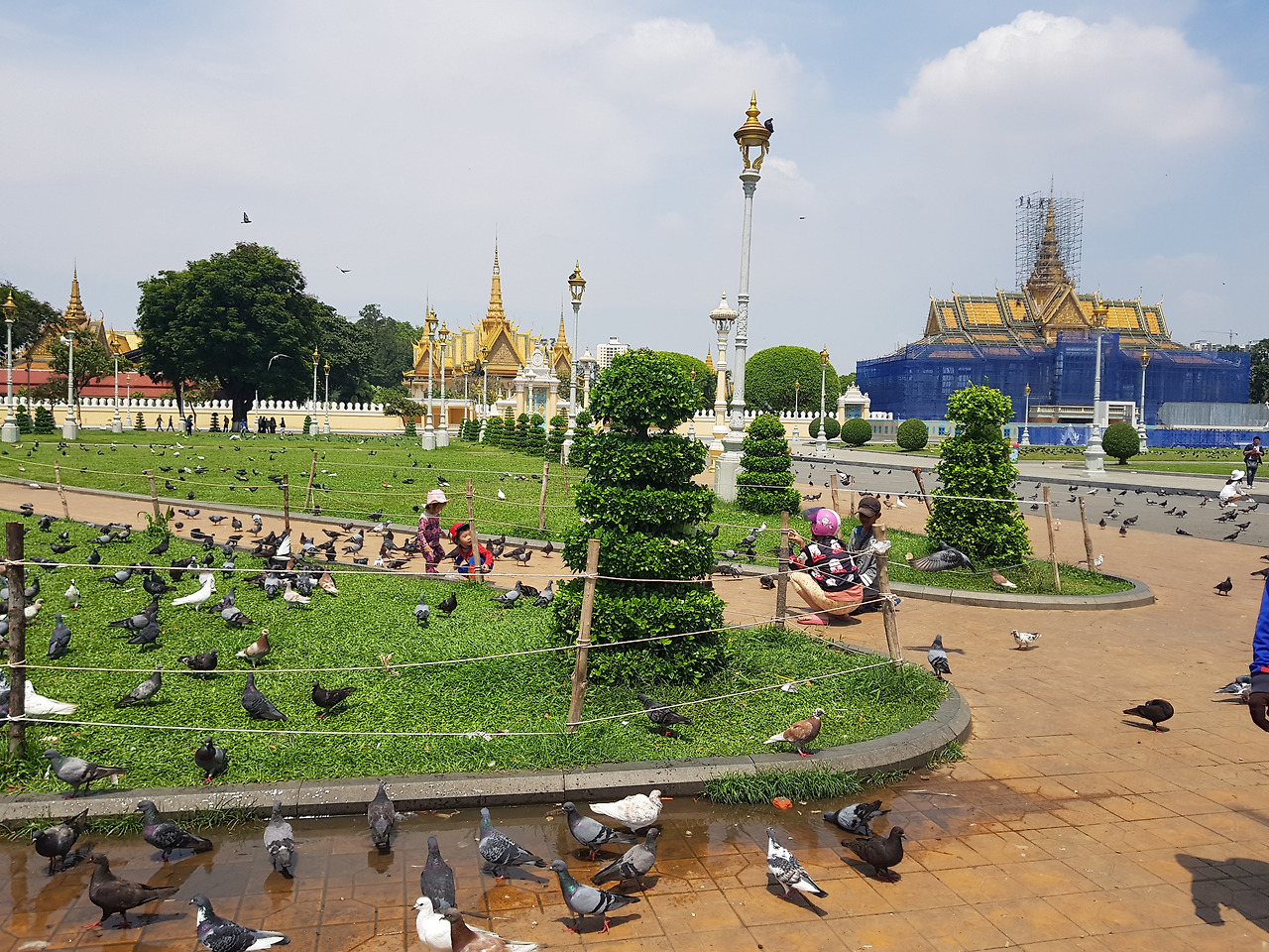 왕궁 앞은 많은 사람들로 붐볐다. 여긴 메콩강의 그늘이 없다. 모두가 행복해 보인다. 비둘기가 이를 증명하듯 이리저리 날며 행복한 날갯짓을 한다. 아이들과 비둘기. 어느덧 나는 메콩강의 그늘을 잊었다. 배낭을 풀어 간식을 꺼내 한 잎 베어 문 나는 목이 턱 막히는 느낌이 들었다. 내가 먹는 이 쌀 호떡은 우리나라 돈으로 400원이다. 나는 지금 이거로 행복해 하지만 혹시 아까 메콩강에서 본 아이들은 매일 먹는 이것이 지겨울지도 모른다는 생각이 들었기 때문이다.