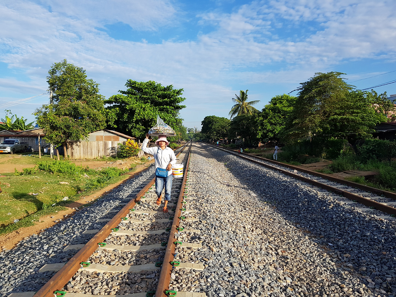 이 학교를 가려면 철길을 따라 달려야 한다. 캄보디아에는 철로가 거의 없다. 철길을 따라 달리는 이 철로는 반티민쩨이에서 태국 국경 도시 포이펫까지 연결된 것으로 개통된지는 두서너 달 되었다. 오전에 한번, 오후에 한번 기차가 다닌다. 철로 앞이 대합실이고 위험한 철로는 평화롭기까지 하다.