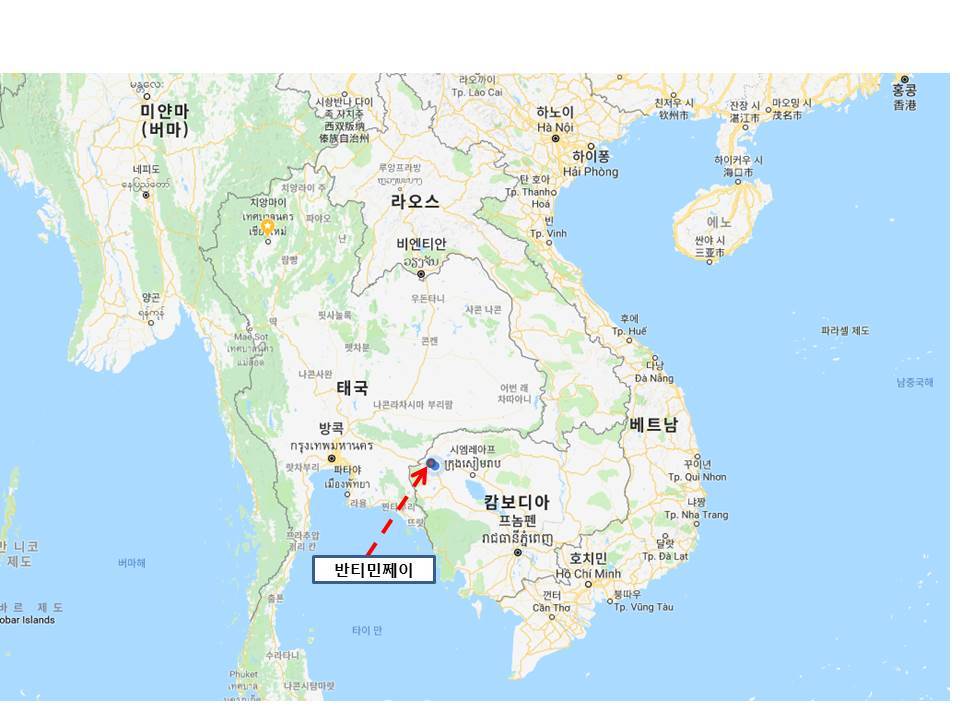 반티민쩨이는 프놈펜에서 380km 떨어져 있다. 태국 방콕이 더 가깝다. 그래서 이곳은 태국으로 가는 버스 편이 있다. 내가 살고 있는 시소폰에서 태국 국경까지는 47km. 나는 이곳으로 임지가 결정된 후 언젠가는 반티민쩨이에서 태국 국경까지 뛰어갈 날을 기대하고 있다.