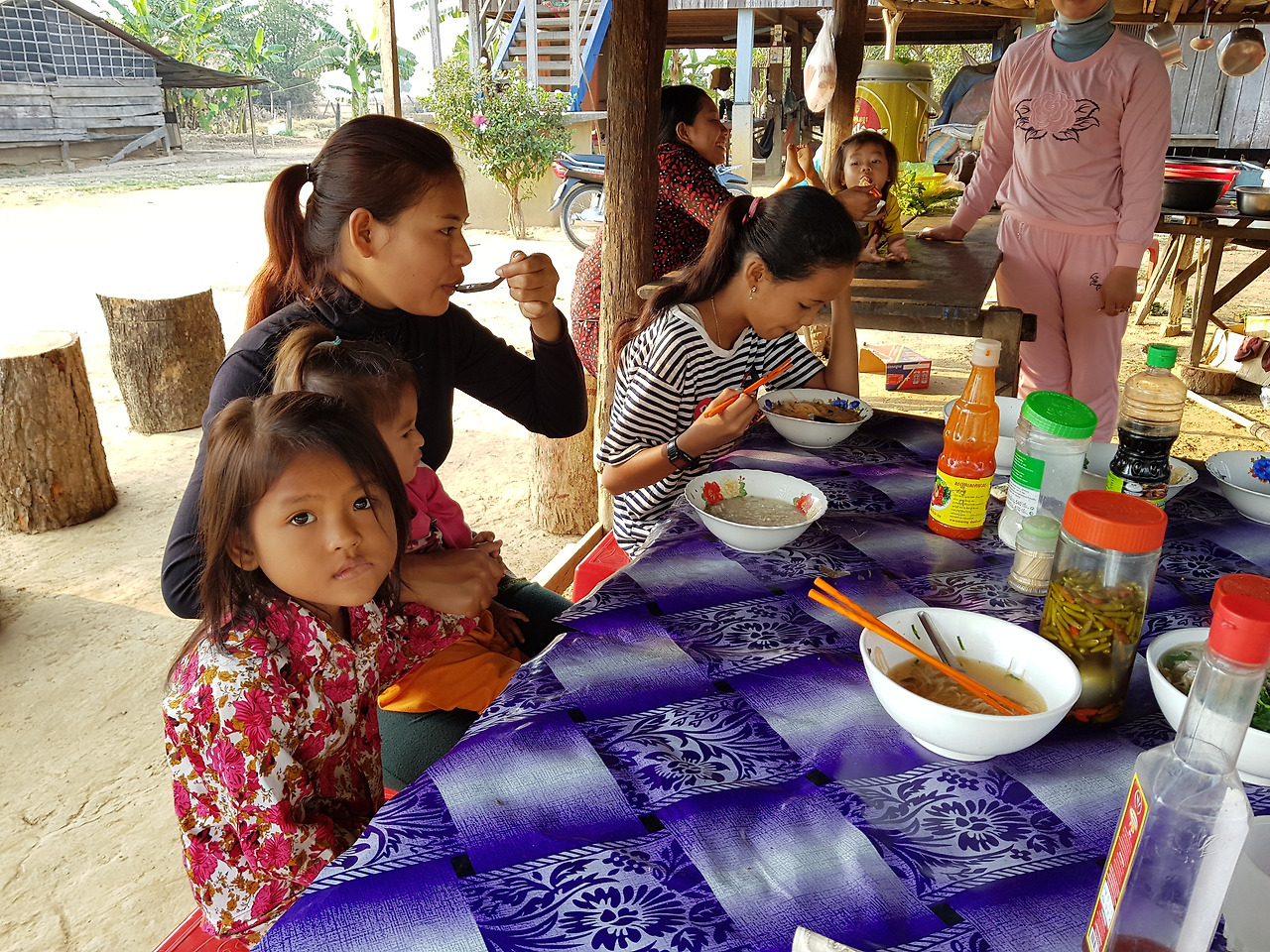 쌀국수(꾸이띠우)로 아침을 먹는 캄보디아 사람들