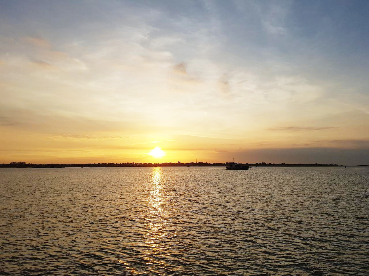 왕궁앞 돈레메콩강의 일출